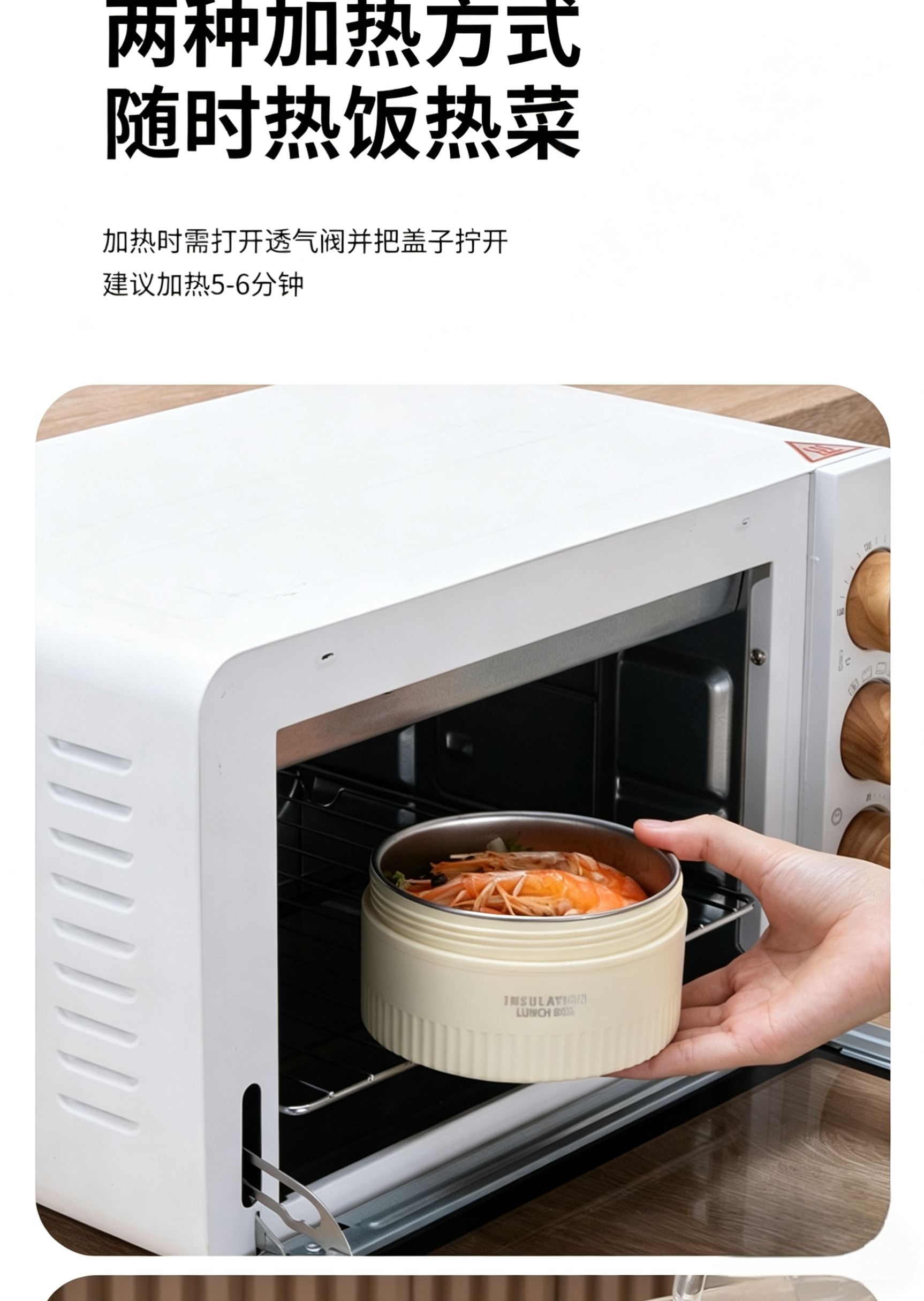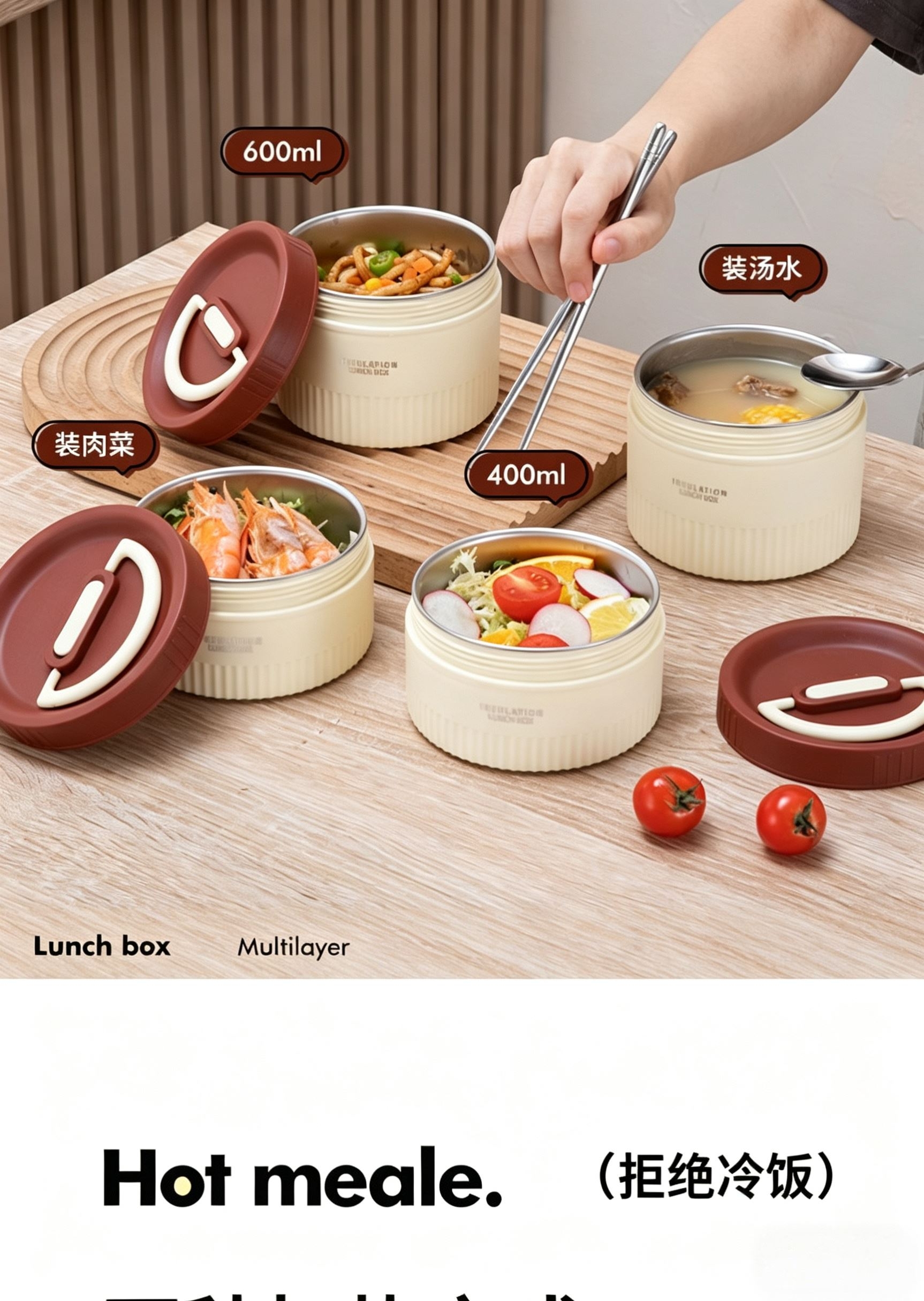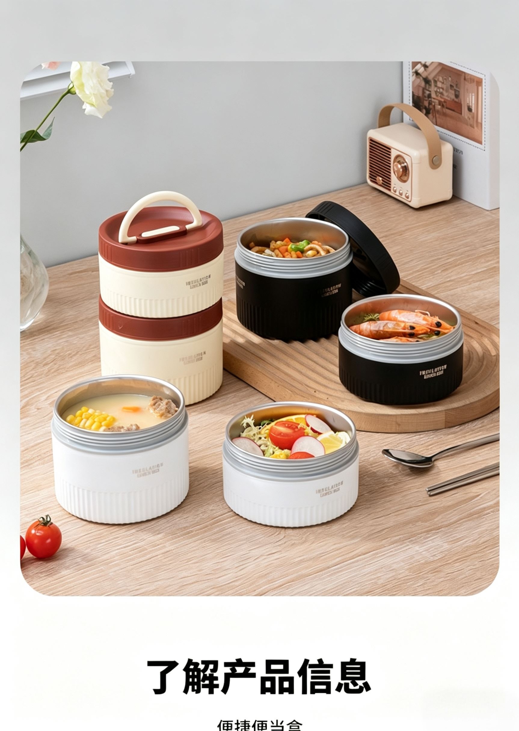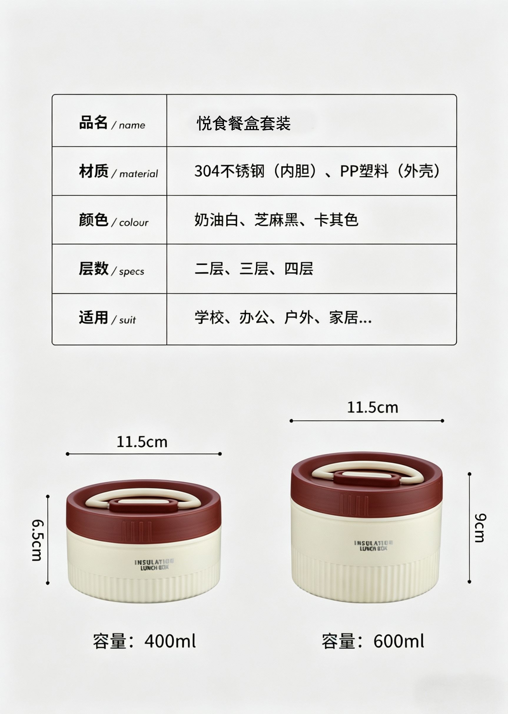 食品级304不锈钢内碗,健康安心每一餐;;一格一味,自由搭配,营养分隔不串味;;内外层分离设计,端拿防烫,保温效果更佳;