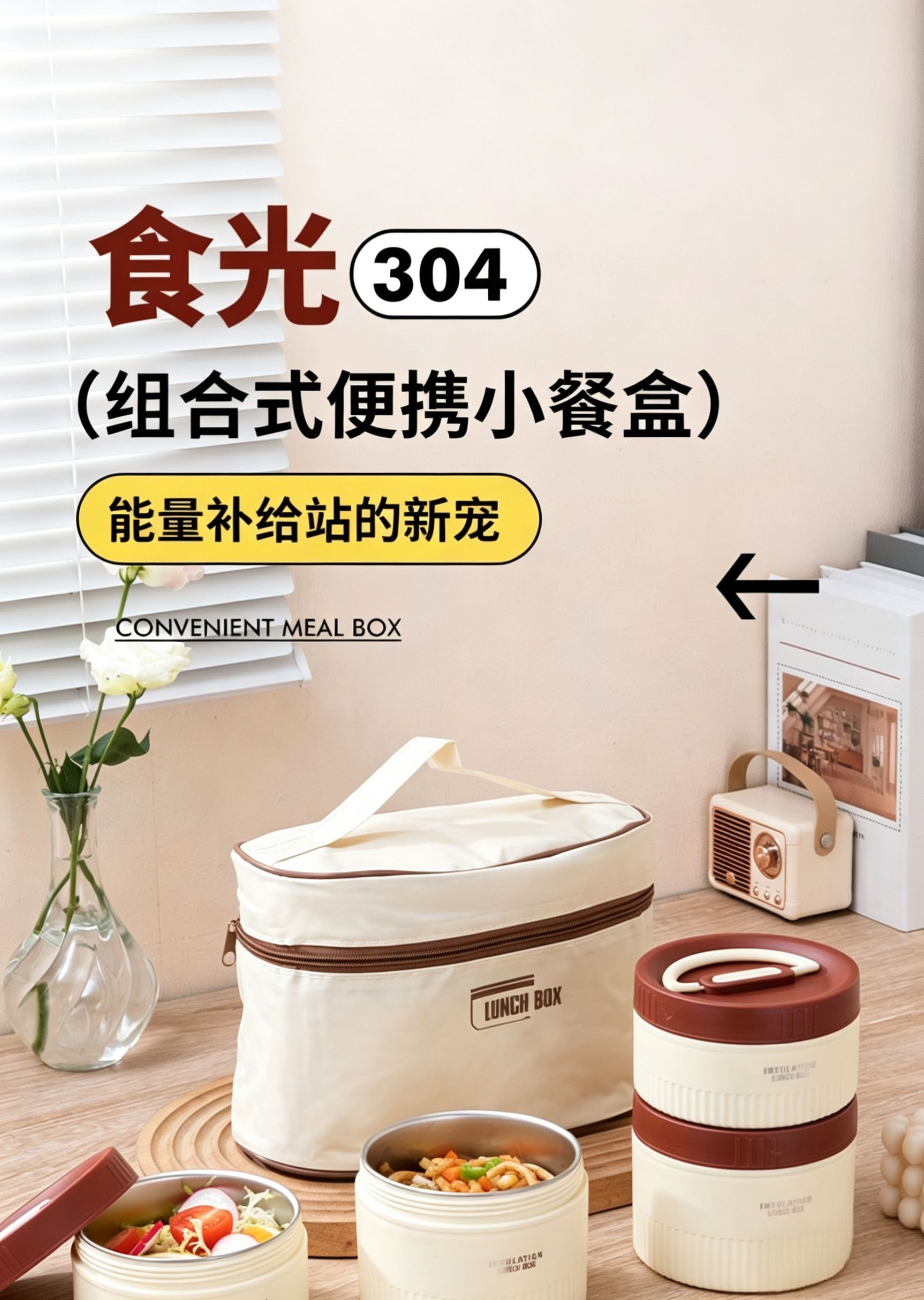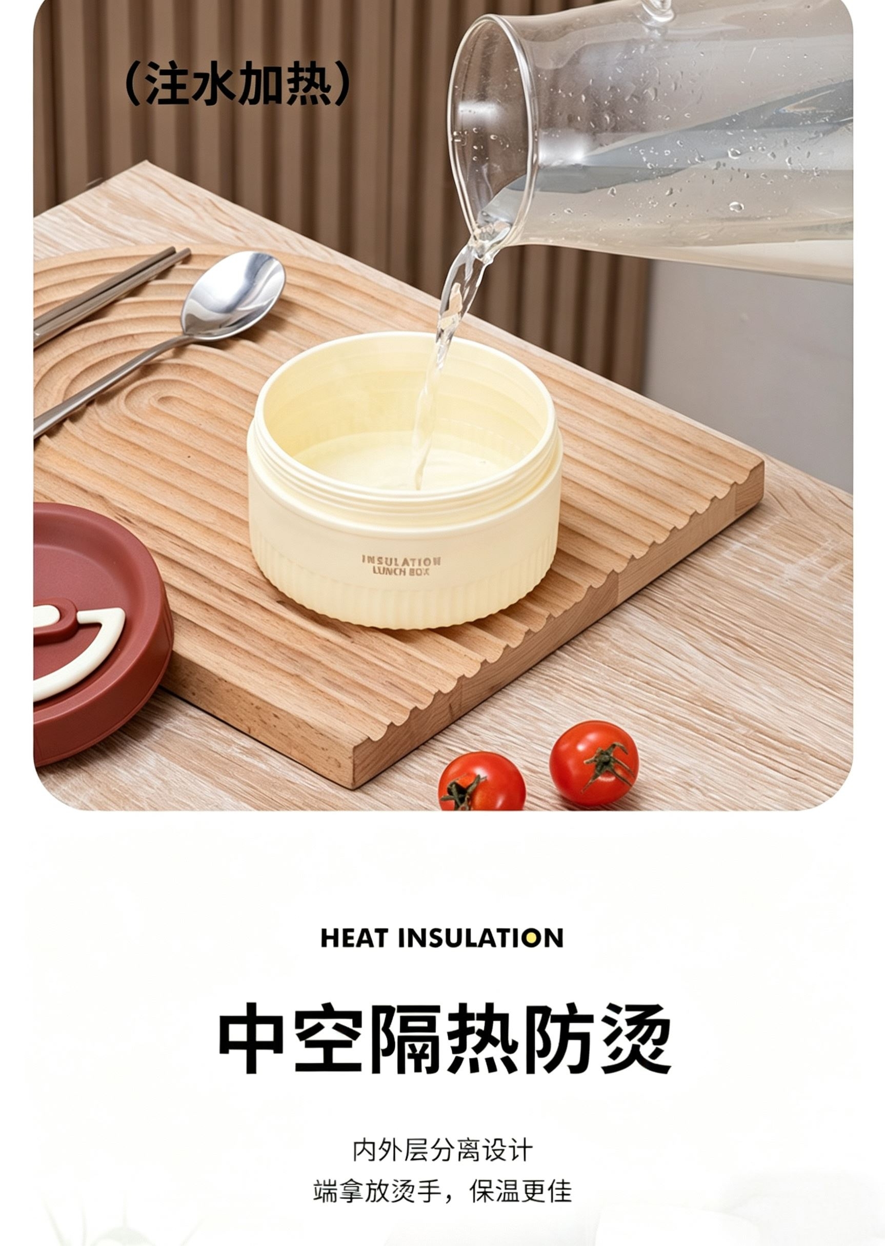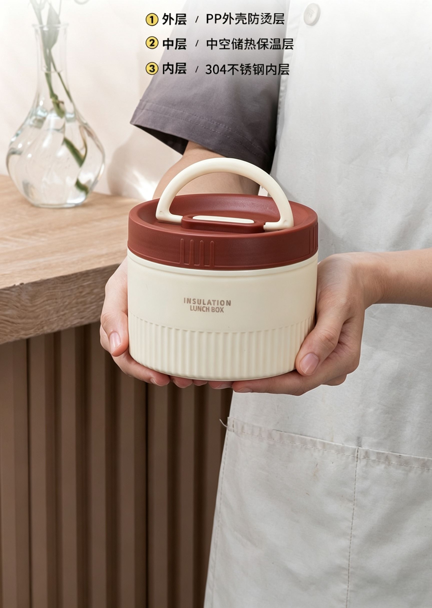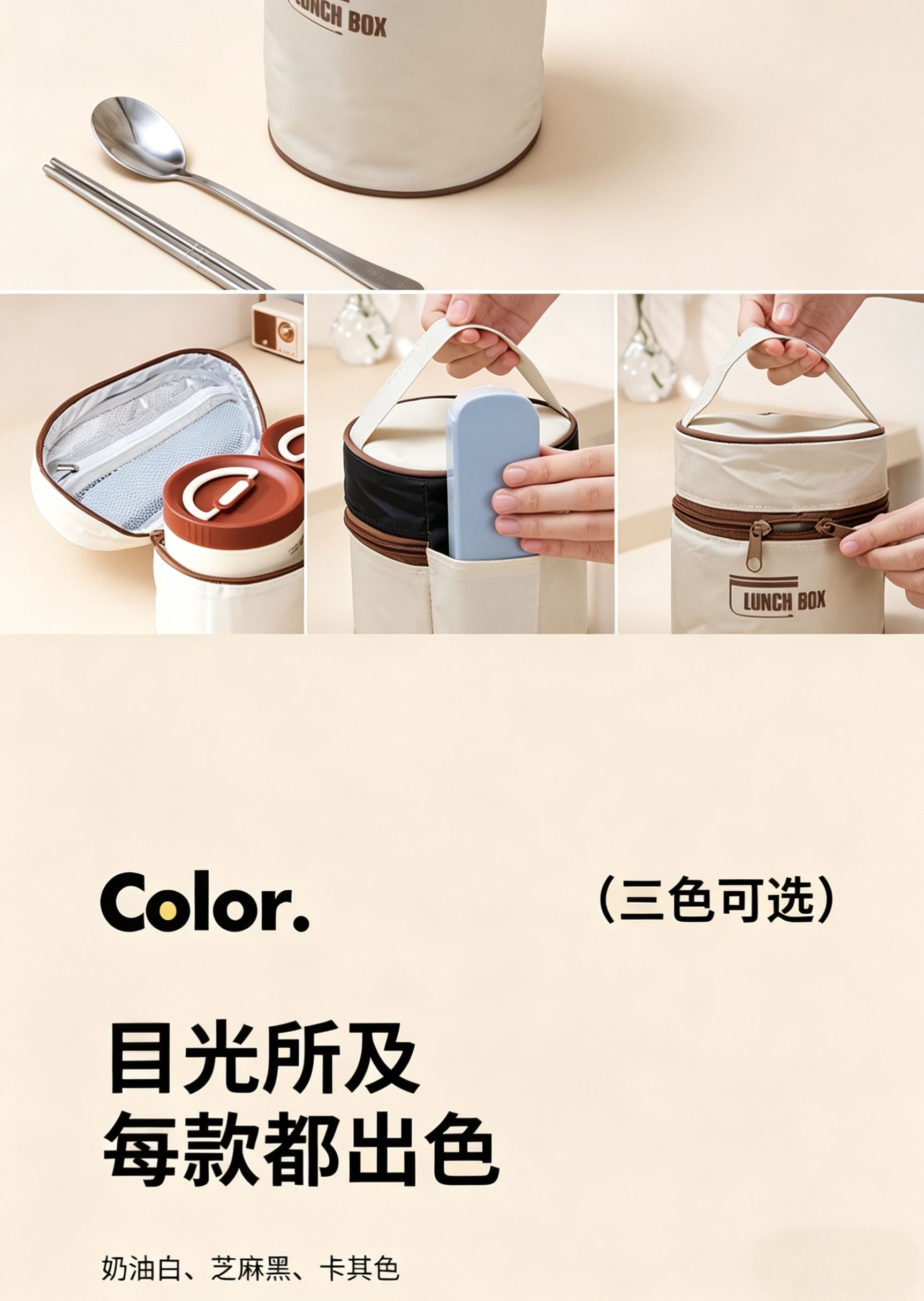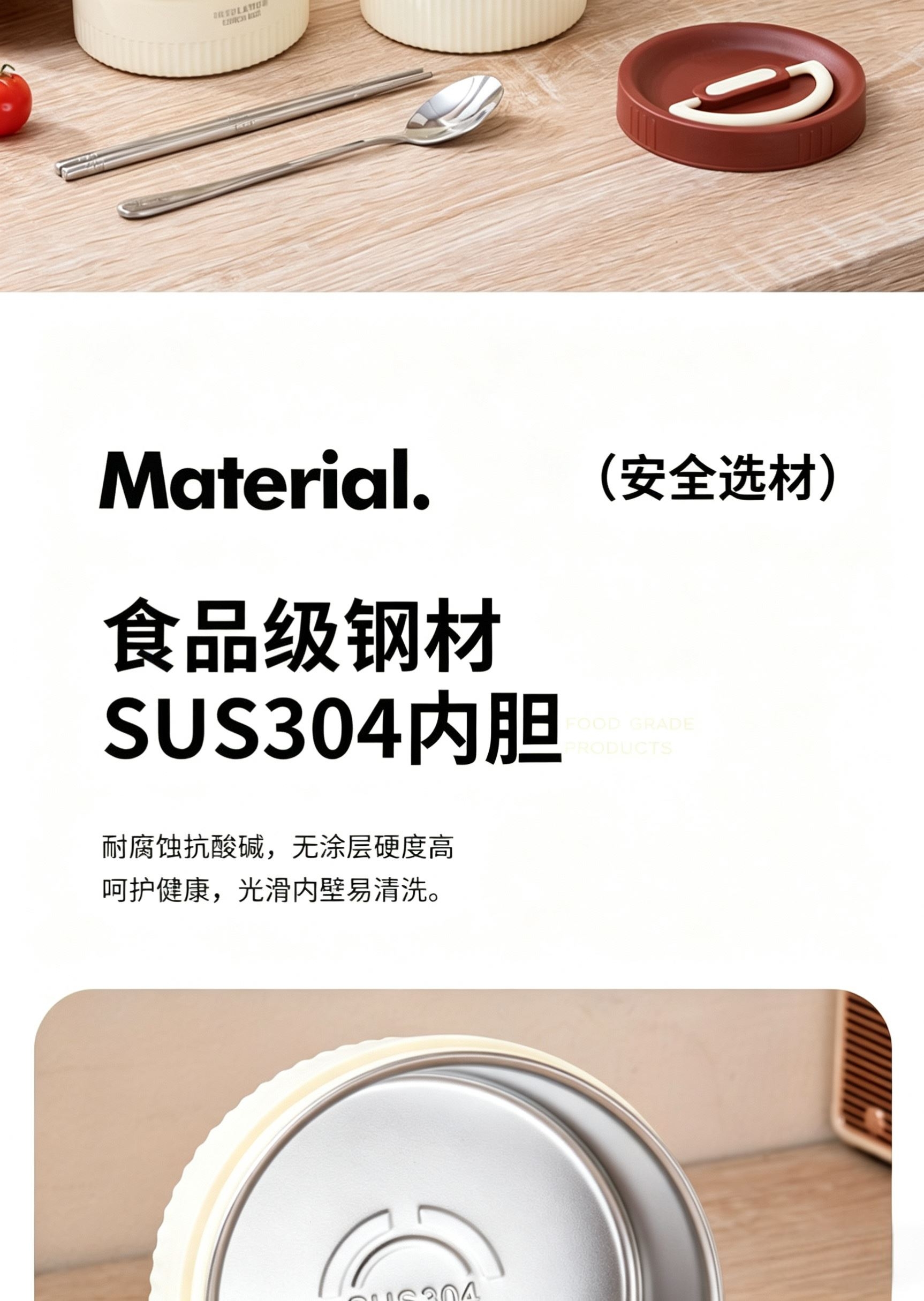 食品级304不锈钢内碗,健康安心每一餐;;一格一味,自由搭配,营养分隔不串味;;内外层分离设计,端拿防烫,保温效果更佳;