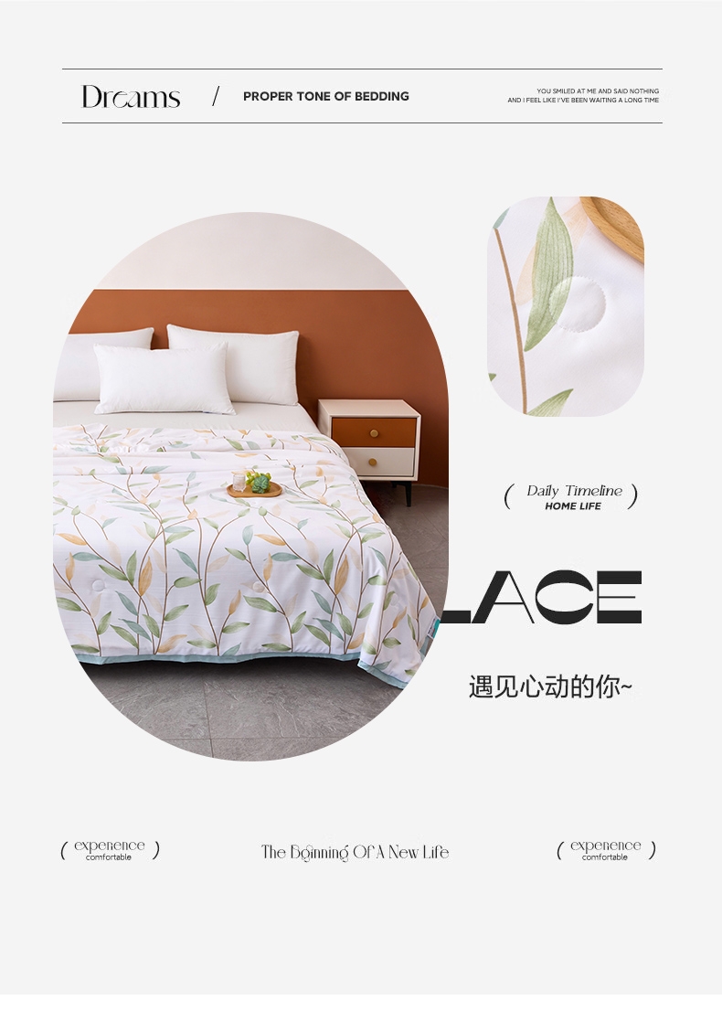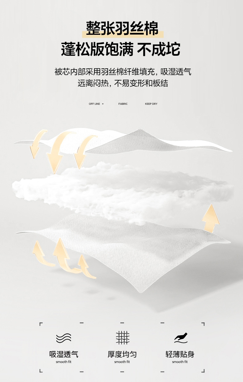 千爽透气贴着身体,仿佛会呼吸,越睡越上瘾。;软软糯糯很亲肤,织造紧密,手感柔软。;非湿排热内芯,不再闷湿燥热