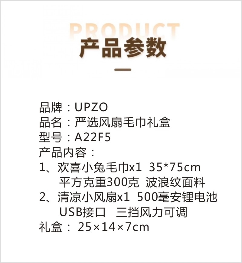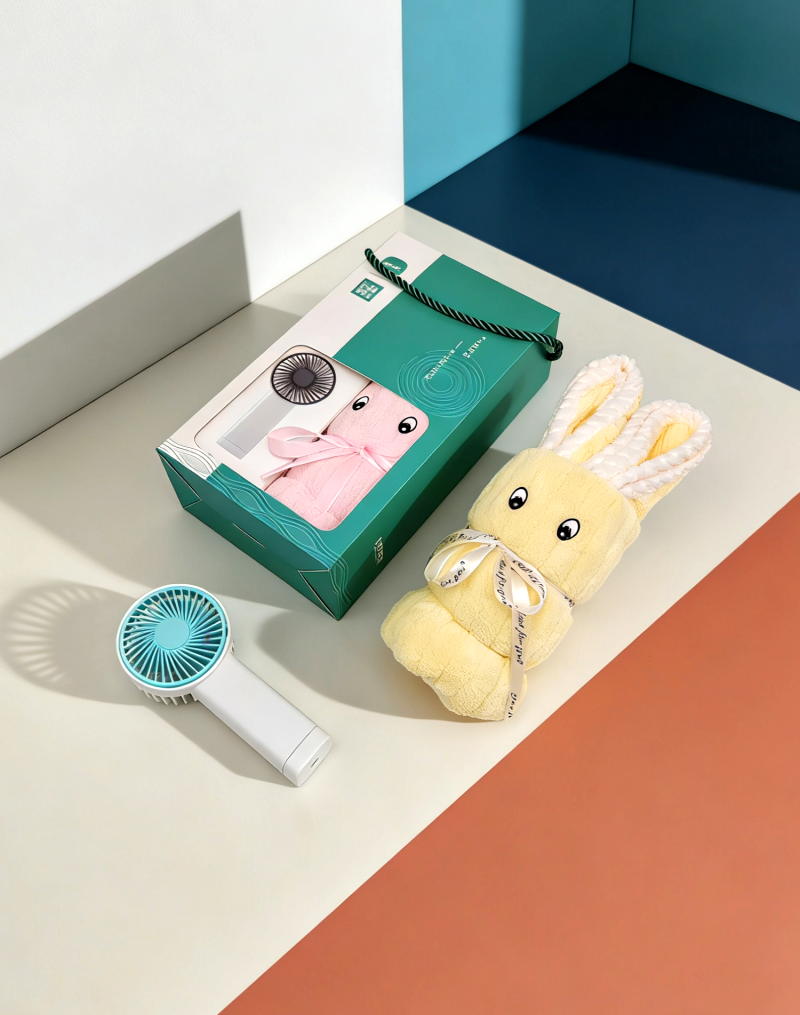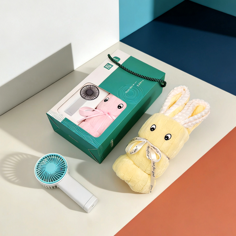 配置清单:欢喜小兔毛巾*1、清凉小风扇*1、礼盒*1