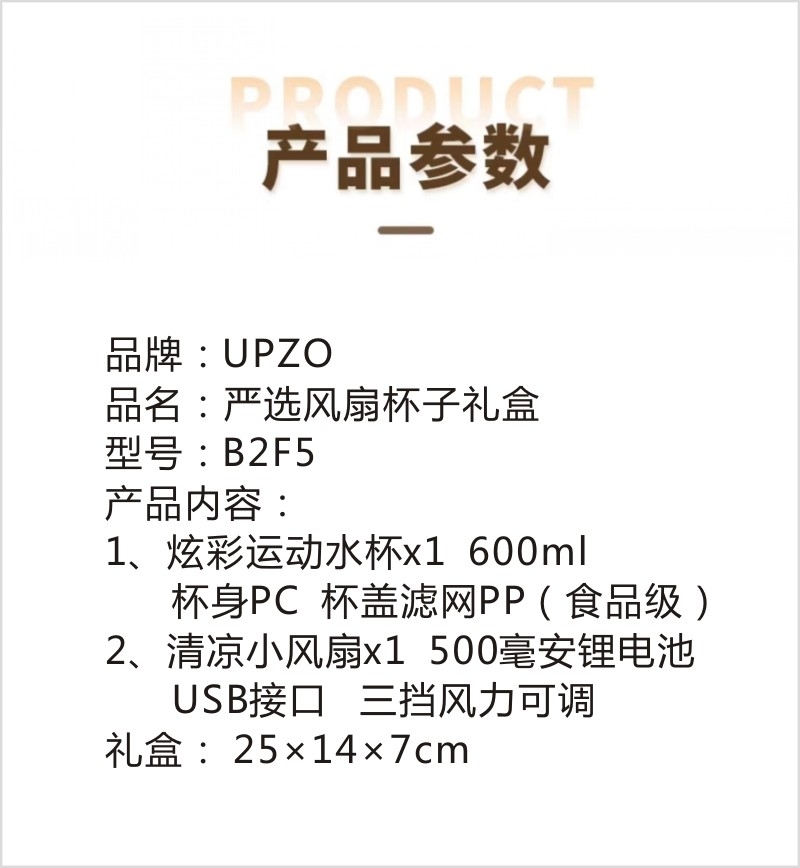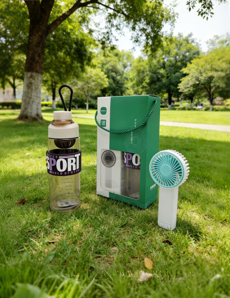 配置清单:炫彩运动水杯*1、清凉小风扇*1、礼盒*1