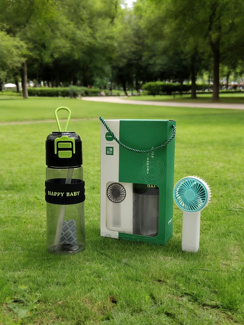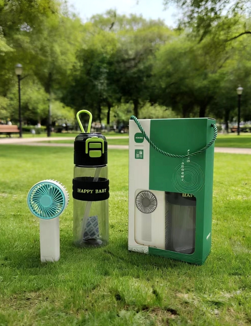 清凉小风扇 500毫安 续航90分钟左右 风力三挡;双饮弹跳运动水杯双饮模式 带手提与隔热设计;夏季清凉组合套装