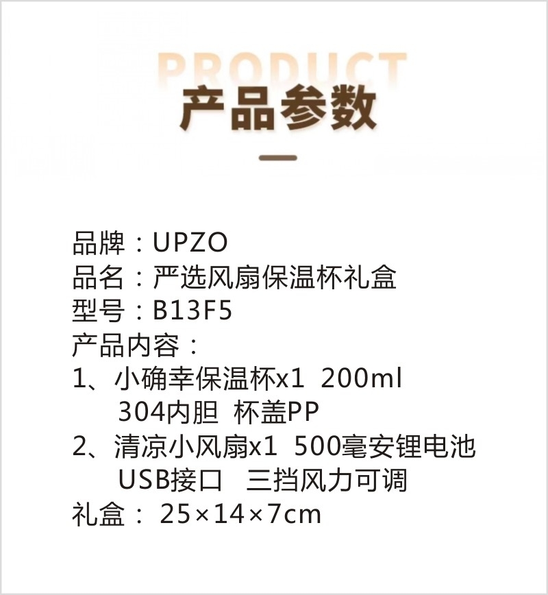 配置清单:小确幸保温杯×1 、 清凉小风扇*1 、礼盒*1