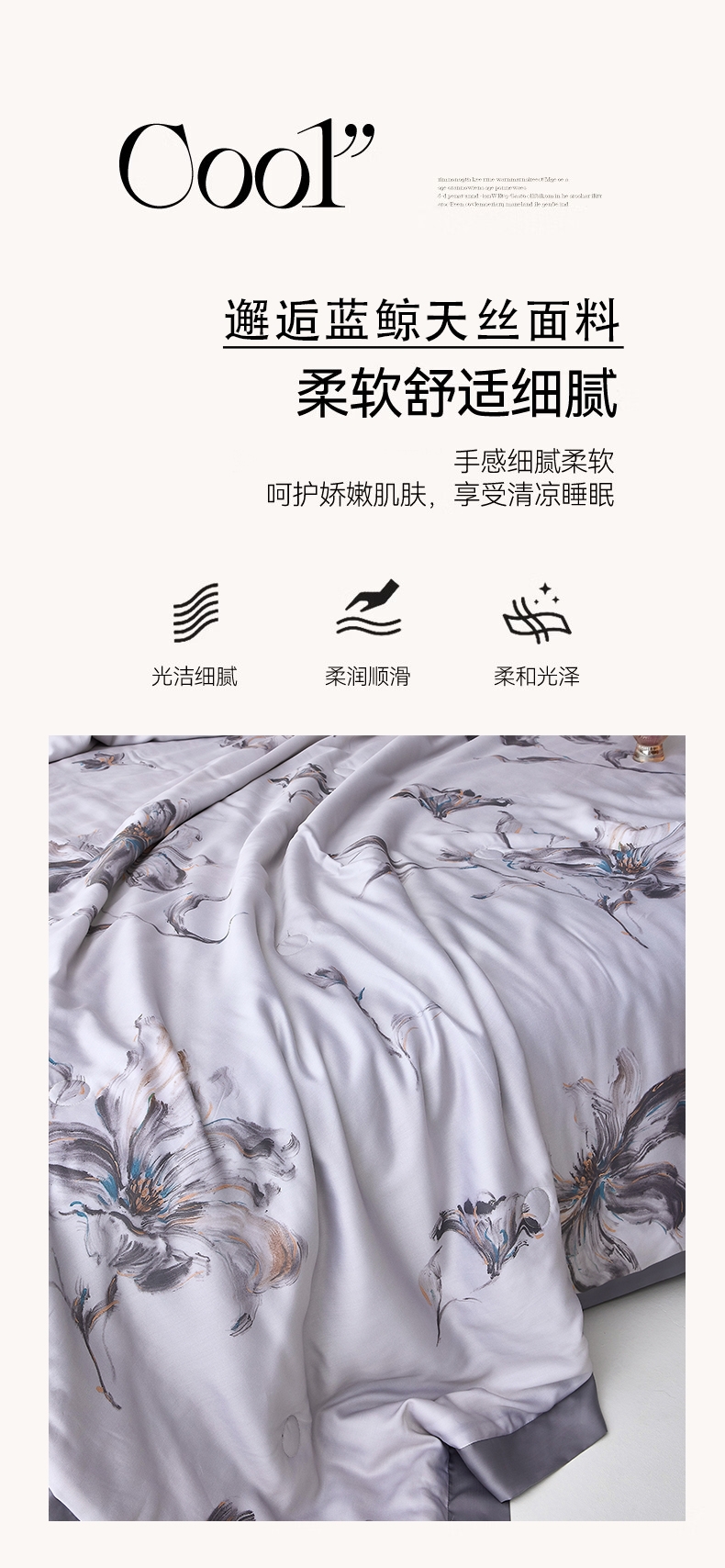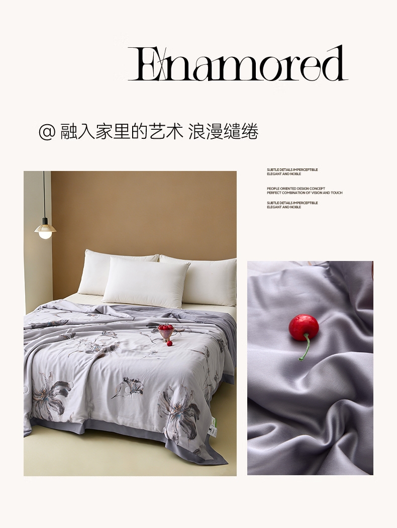 严选兰精天丝面料,柔软舒适亲肤贴身、不褪色;以再生纤维为原料,经过精梳工艺处理;有着棉的柔软与丝的冰滑,灵感加持,吸湿透气不闷热。