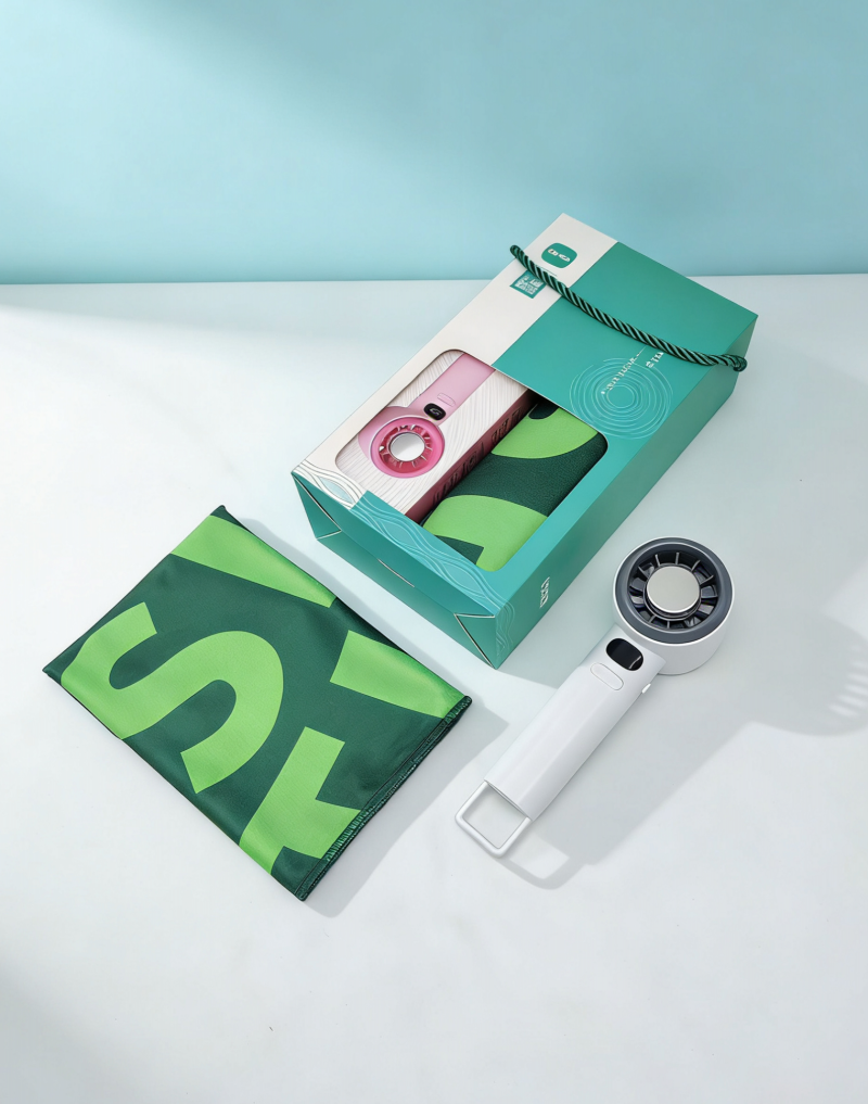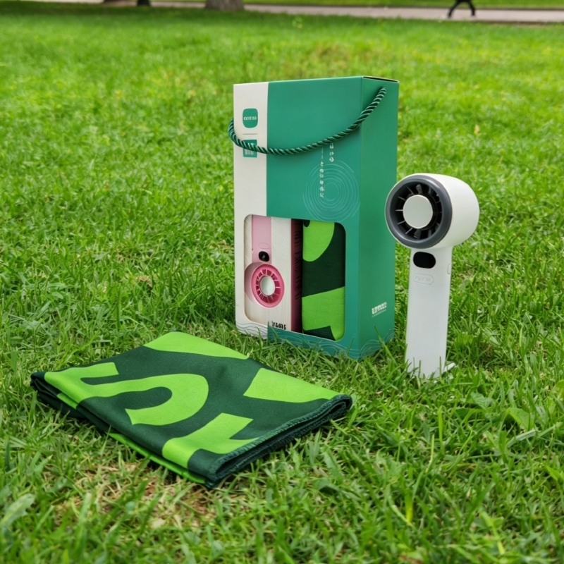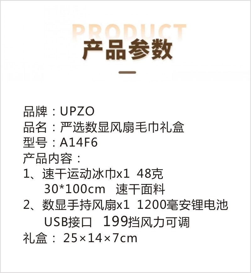 配置清单:速干运动冰巾*1、数显手持风扇*1 、礼盒*1