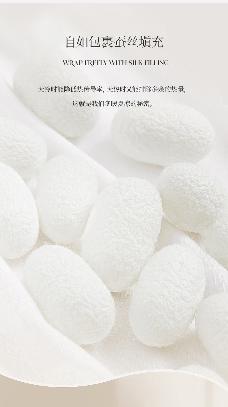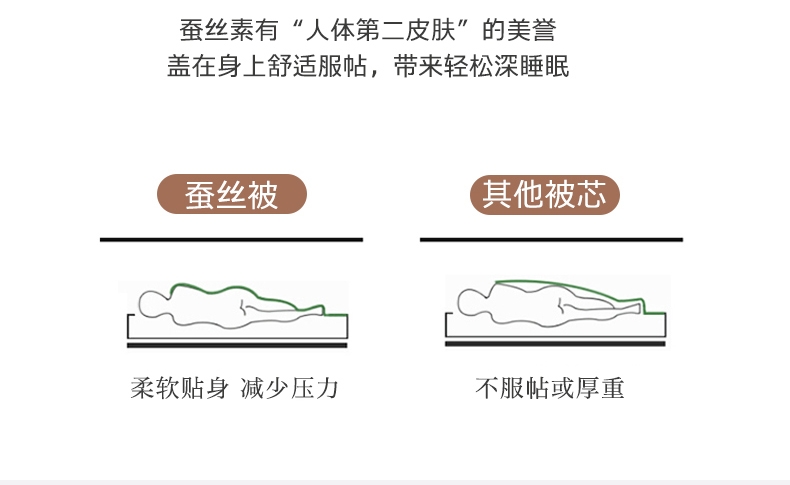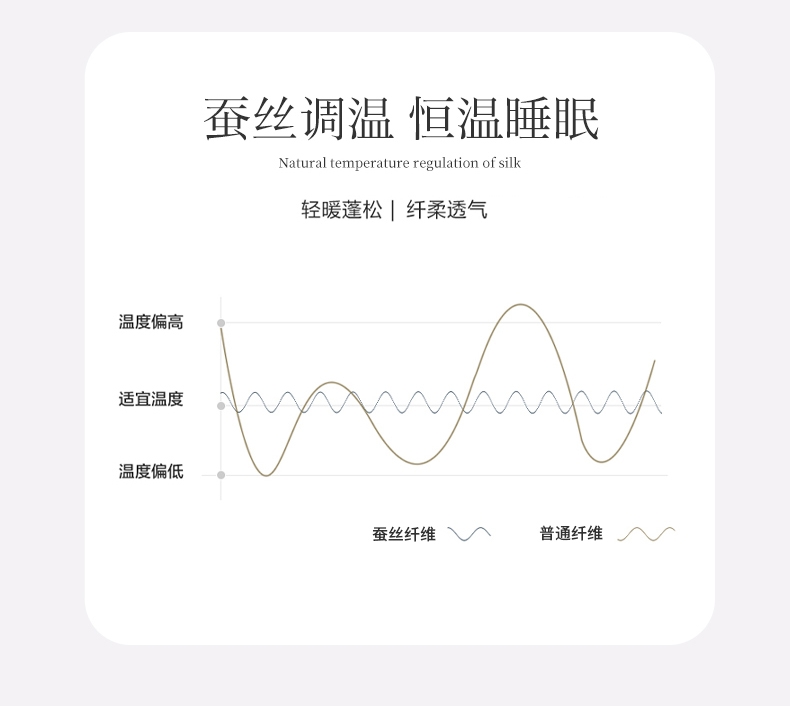 蚕丝的多孔隙结构,自带呼吸感;能够使被芯内温度保持舒适,更适合东方人的睡眠环境;可以让人更好入睡,睡得更舒服。