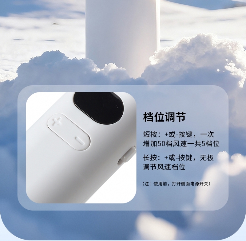 数显手持风扇:1200毫安锂电池 USB接口 (续航时间120分钟左右 199挡风力可调)