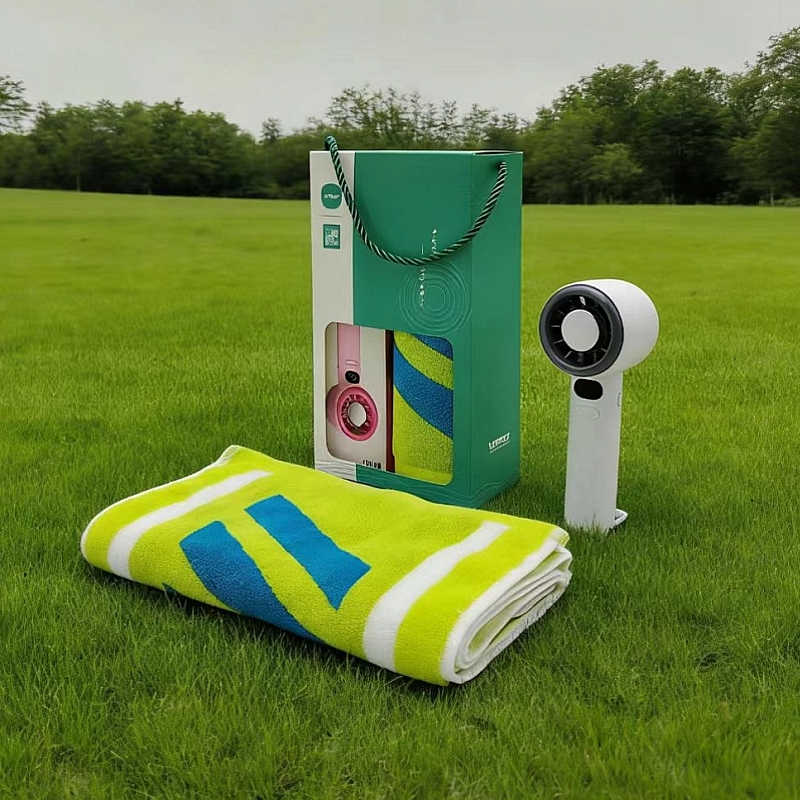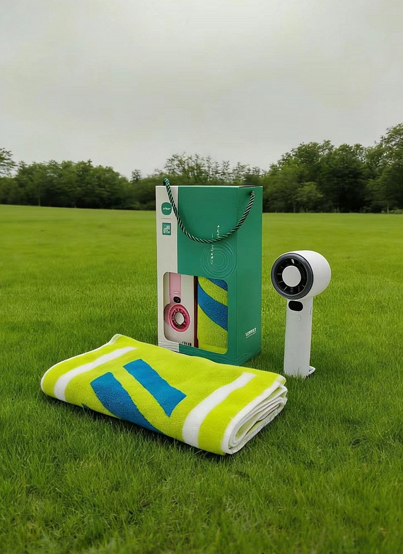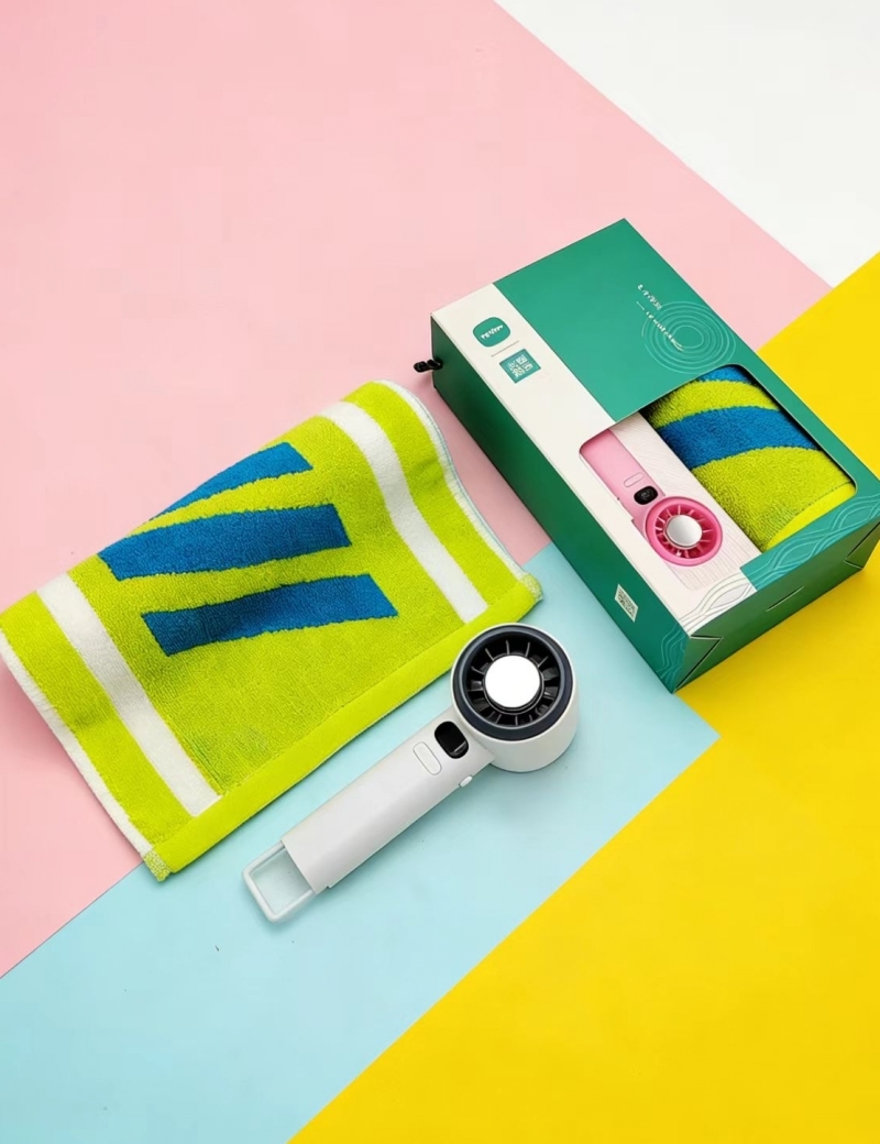 数显风扇 1200毫安 199档可调 长续航 靓丽;纯棉提花运动巾精选精梳棉材质结合色织工艺;夏季清凉组合套装