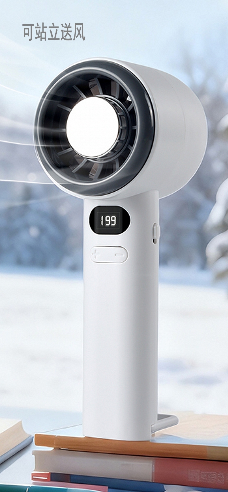 数显手持风扇: 1200毫安锂电池 USB接口 (续航时间120分钟左右 199挡风力可调)