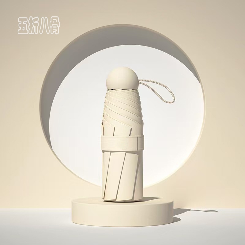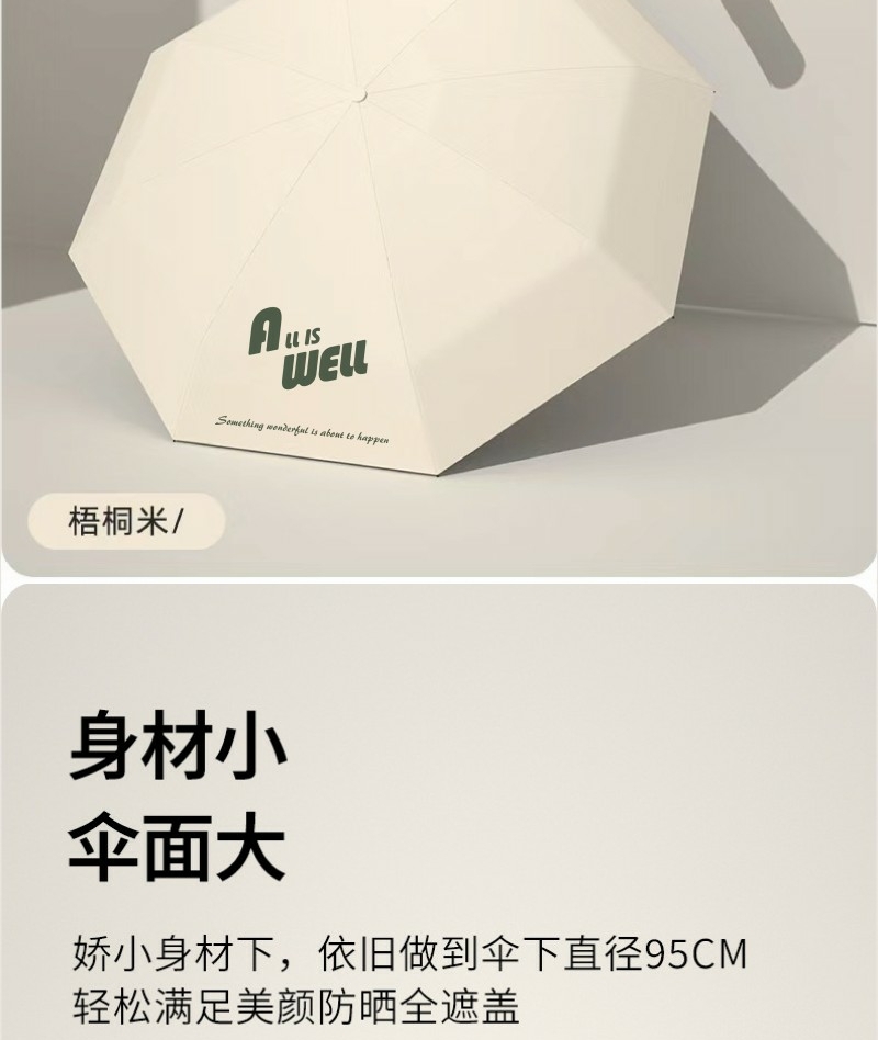 五折八骨晴雨伞: 伞下直径95CM 合金纤维骨架 黑胶面料