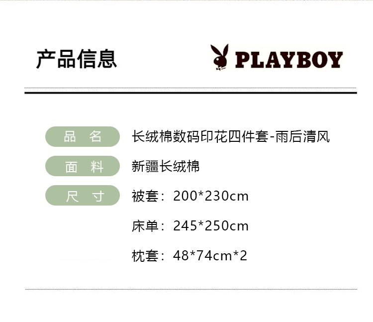 花花公子 长绒棉数码印花四件套雨后清风PB-25T7812