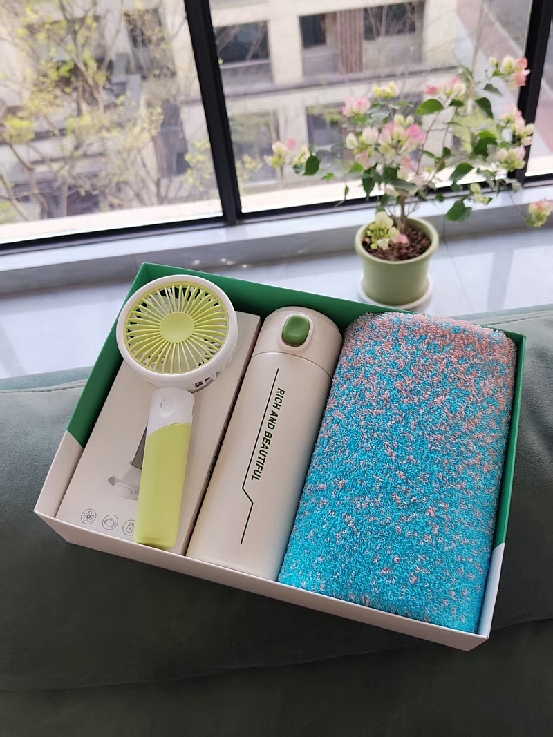 配置清单:炫彩系列棉毛巾×1 、严选好物系列大号风扇 ×1、炫彩保温杯×1、礼盒×1