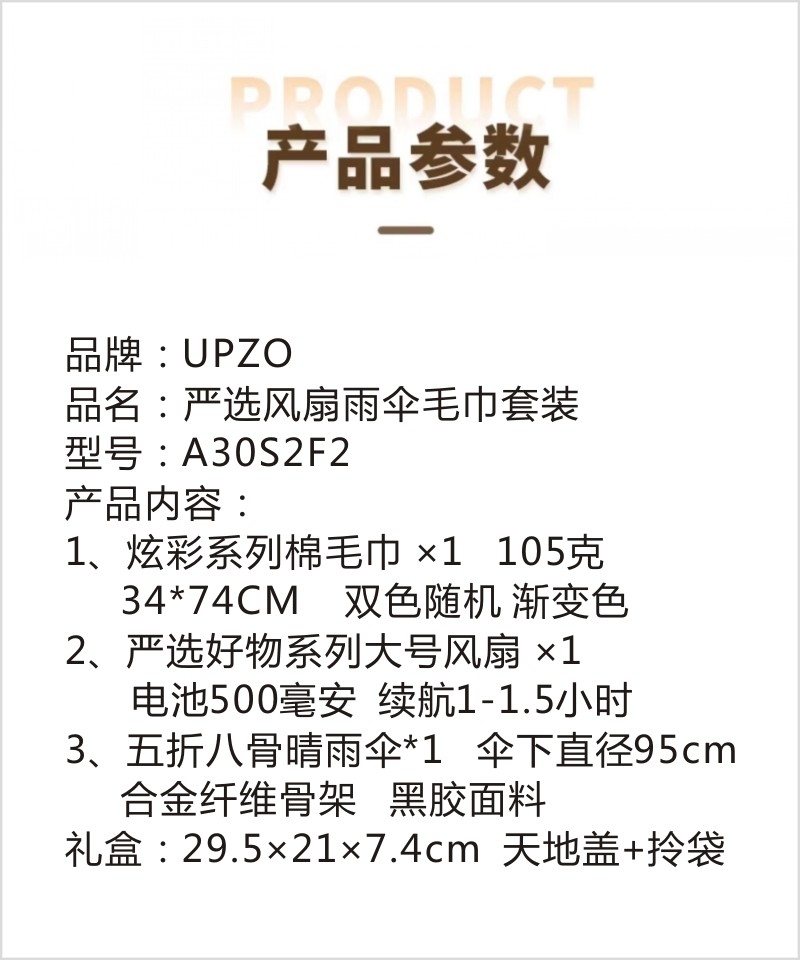优品尚竹 严选风扇雨伞毛巾套装A30S2F2