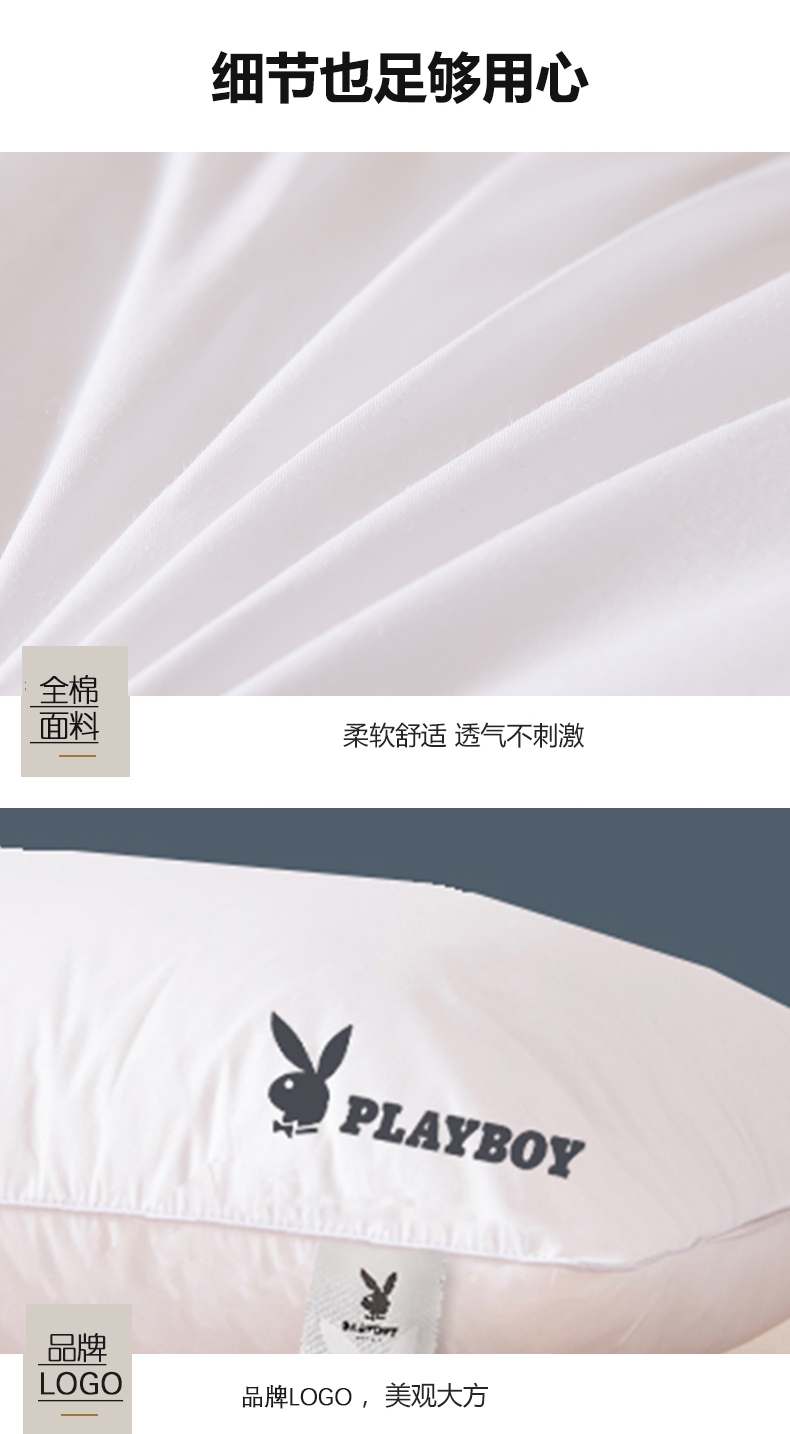 花花公子 全棉羽丝绒水洗枕PB-25MC773