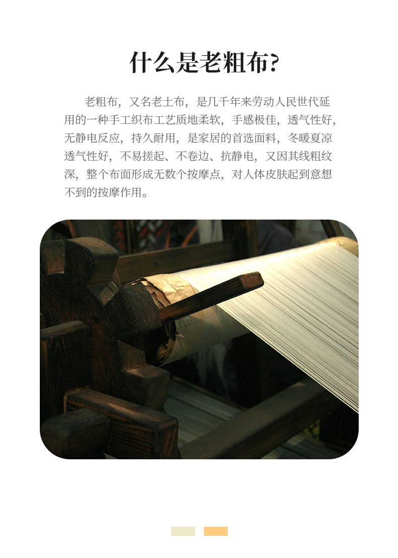 原棉老粗布是世代沿用的一种手工织布工艺;它以棉为原料,双线合股并织,质地柔软,;可折叠收纳,透气性强 冰爽 丝滑