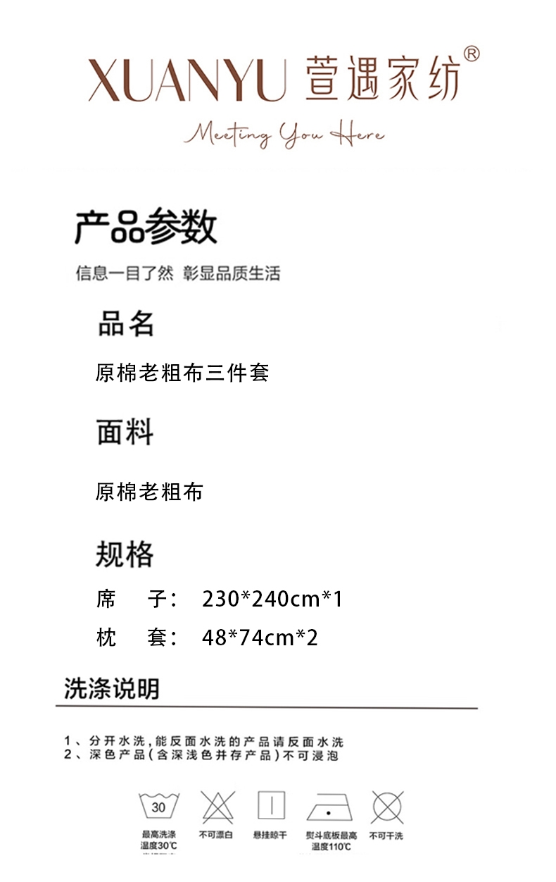 萱遇家纺 原棉老粗布三件套X-L2926