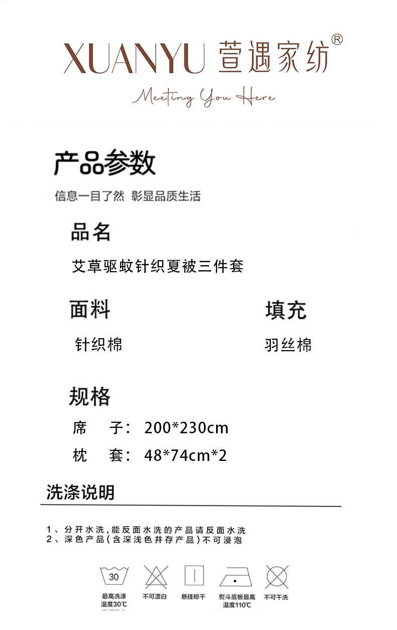 萱遇家纺 艾草驱蚊针织夏被三件套X-L2929