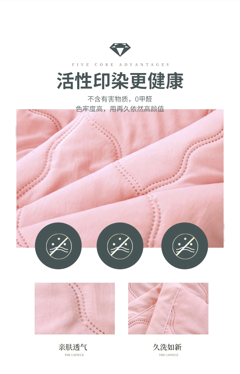 亲肤磨毛织物是一种功能性织造方式;增加了贴身接触的柔软性和亲肤性。;采用羽丝棉填充,柔软蓬松,亲肤性佳