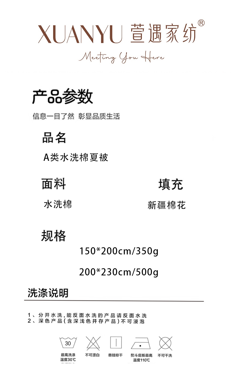 萱遇家纺 A类水洗棉夏被X-B8005-1