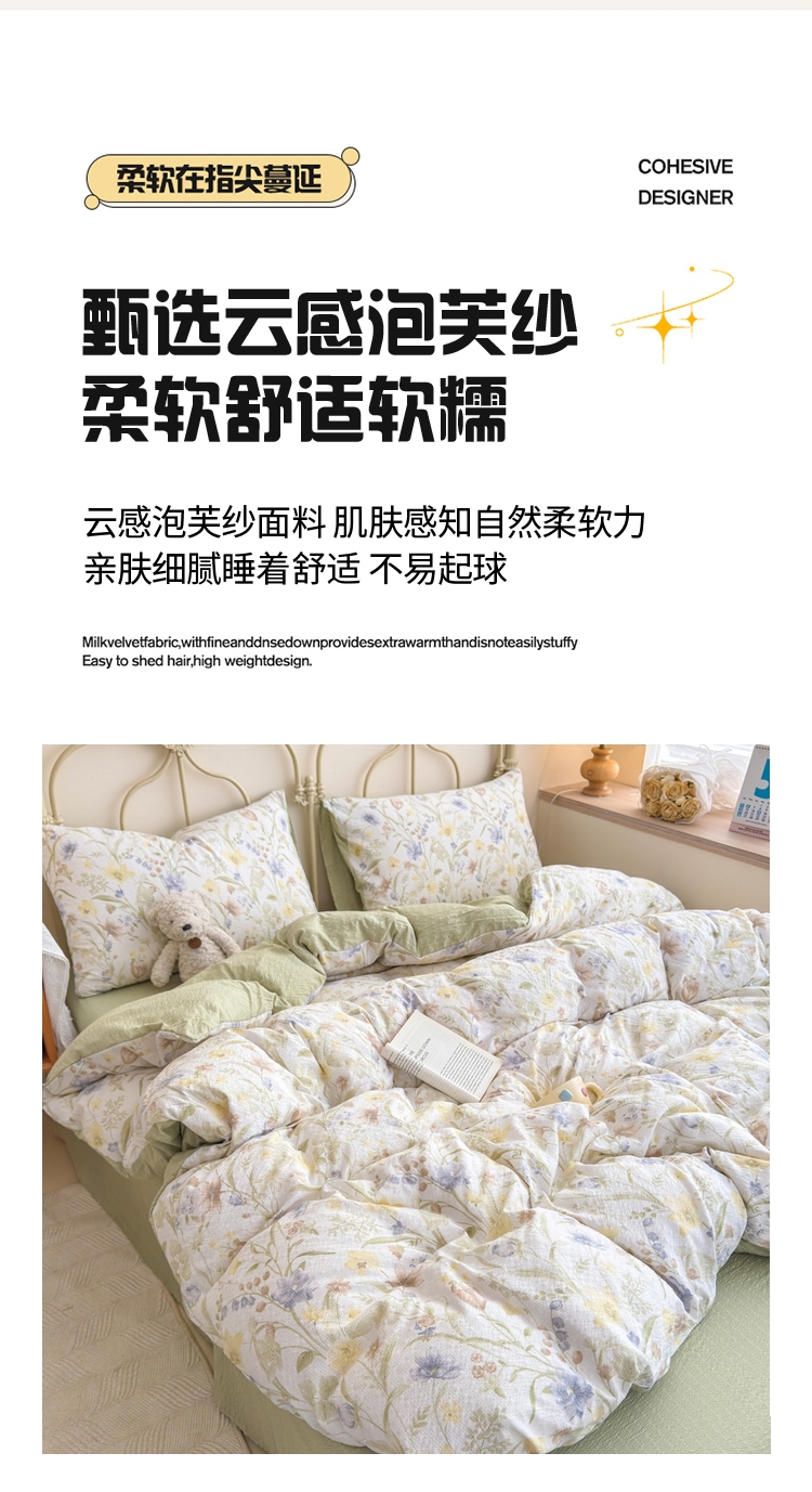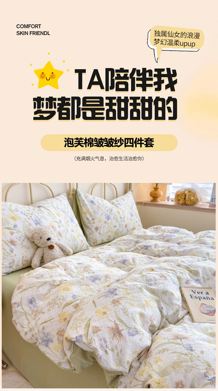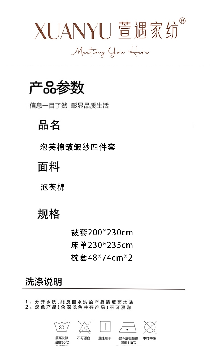 萱遇家纺 泡芙棉皱皱纱四件套X-T8012