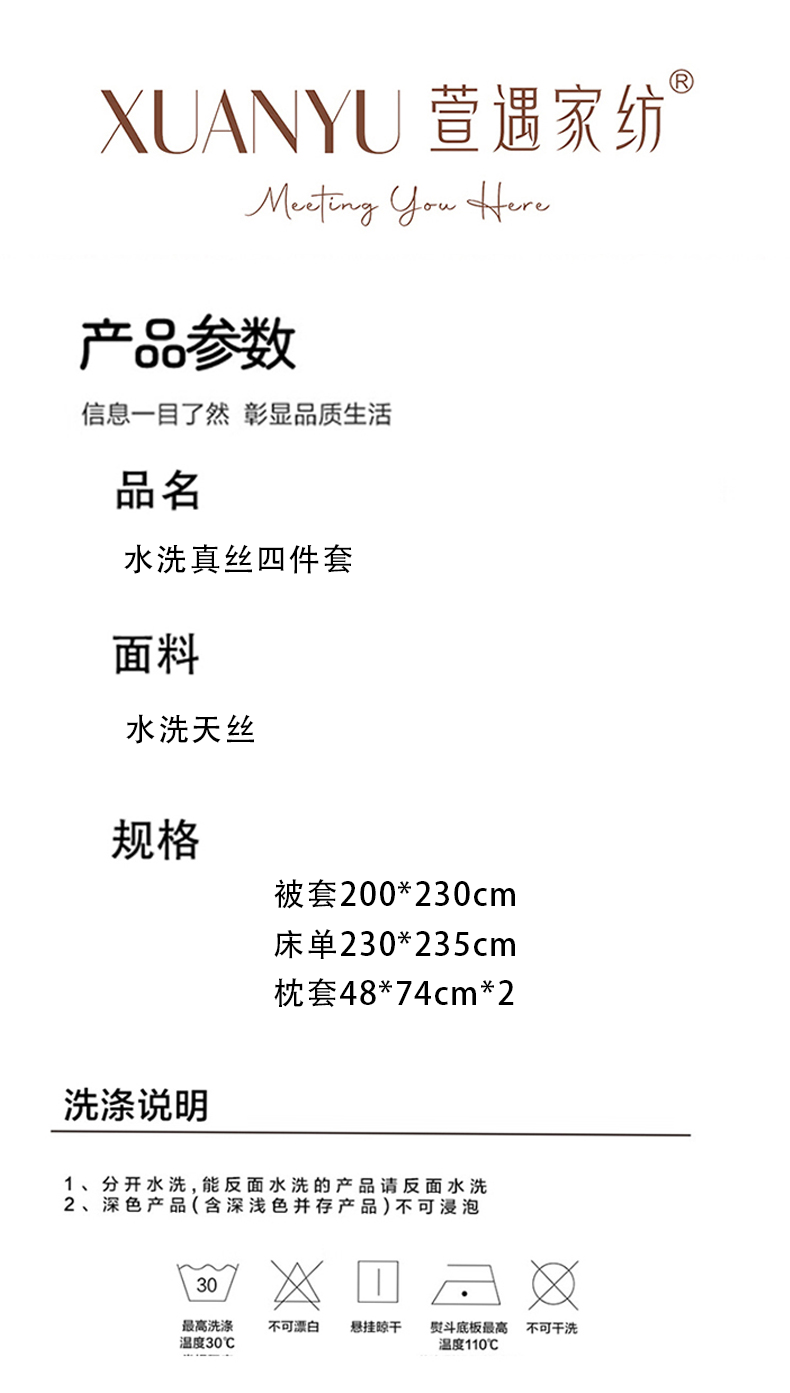 萱遇家纺 水洗真丝四件套X-T8009