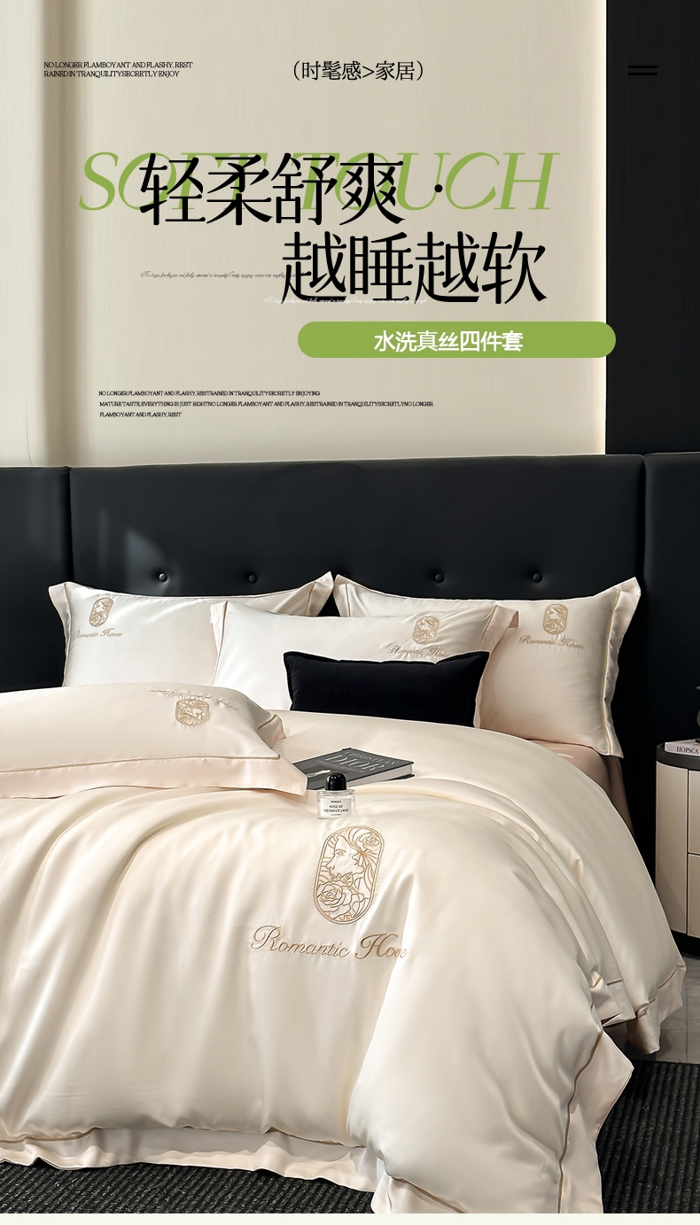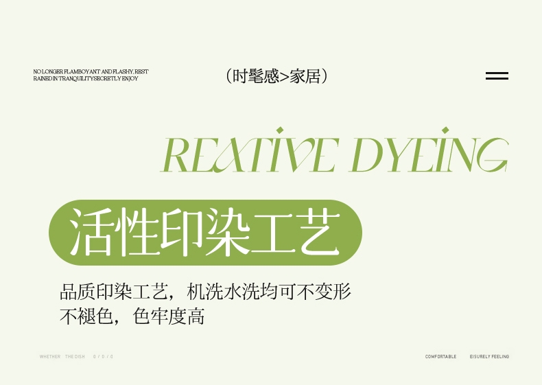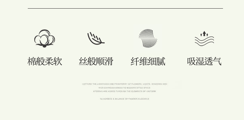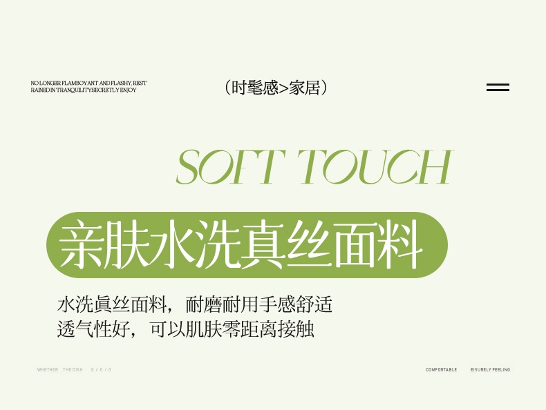 舒适水洗真丝面料,柔软舒适亲肤贴身;经过精梳工艺处理,面料手感柔软如贴身内衣,睡感舒适;.面料缩水率低,色牢度高,经洗耐用。