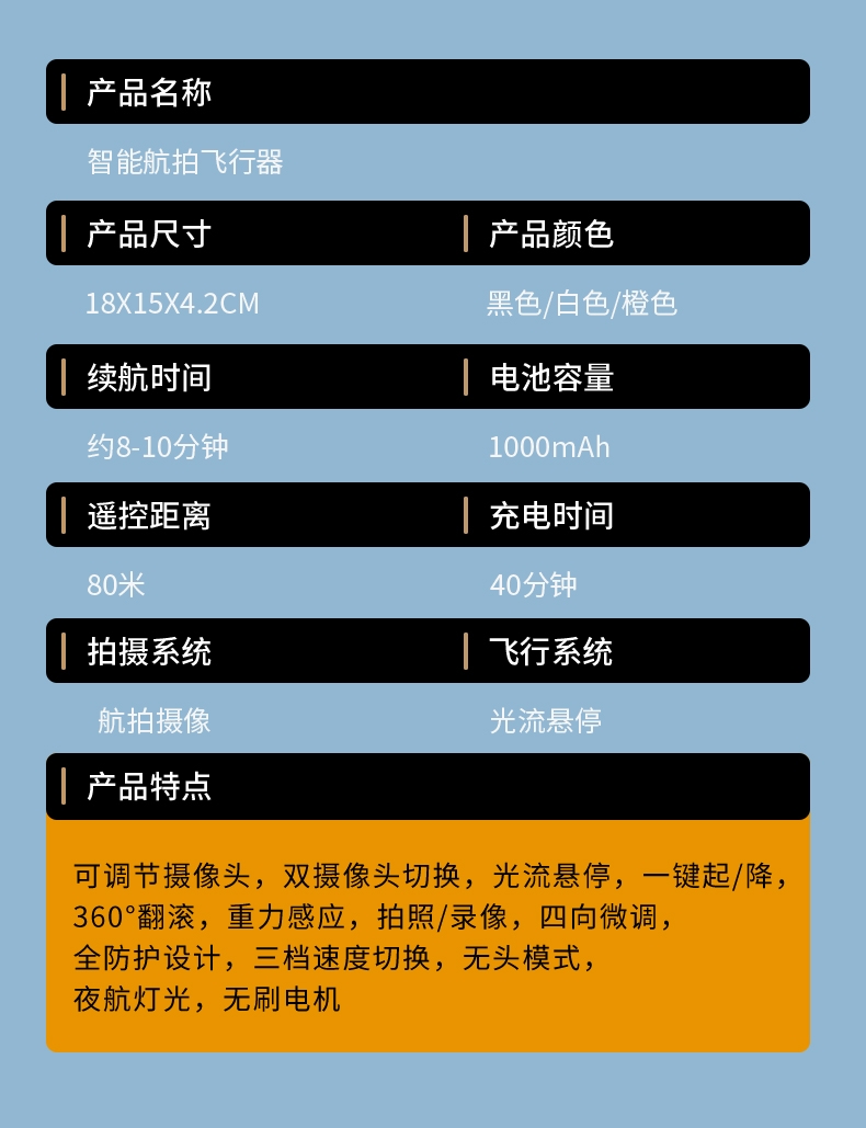 飞行时间:约8-10分钟/单电池