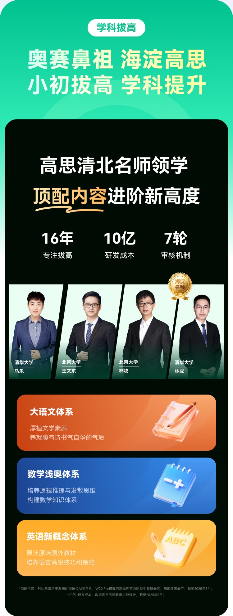 小初高资源:课内巩固、高思拔高课;55万真题卷、重难点复习、AI作业辅导;幼小资源:海量低幼回本1400+、双语阅读、幼小衔