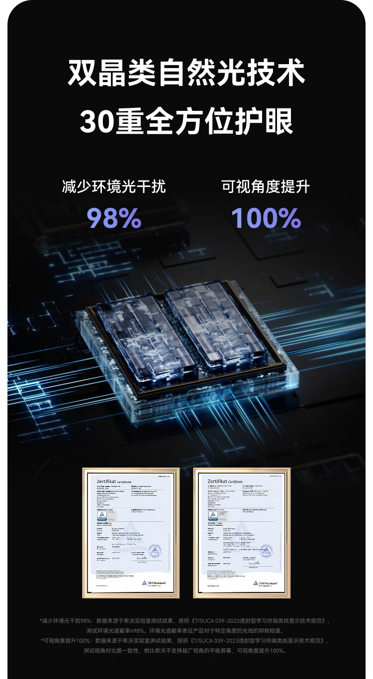 屏幕:15.6英寸,2A类纸屏+双晶柔光+3S调光算法