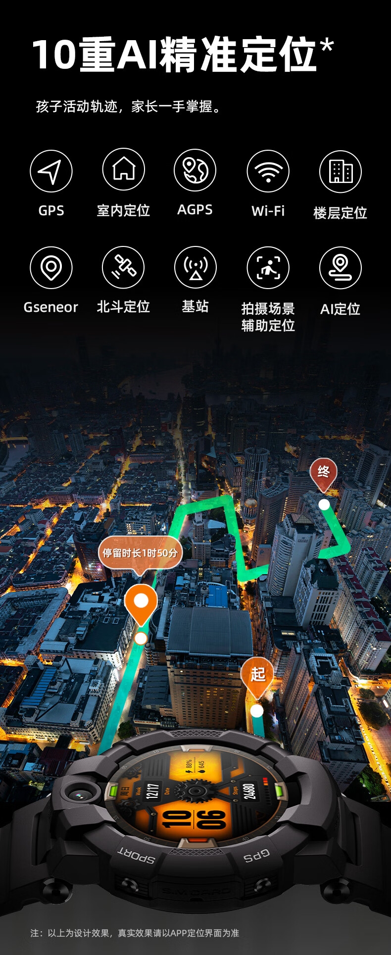 定位:10重高精定位(GPS+北斗+基站+Wi-Fi+AGPS+G-sensor+室内定位+AI定位+拍摄场景辅助定位+楼层定位)