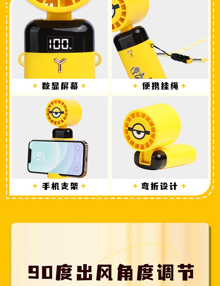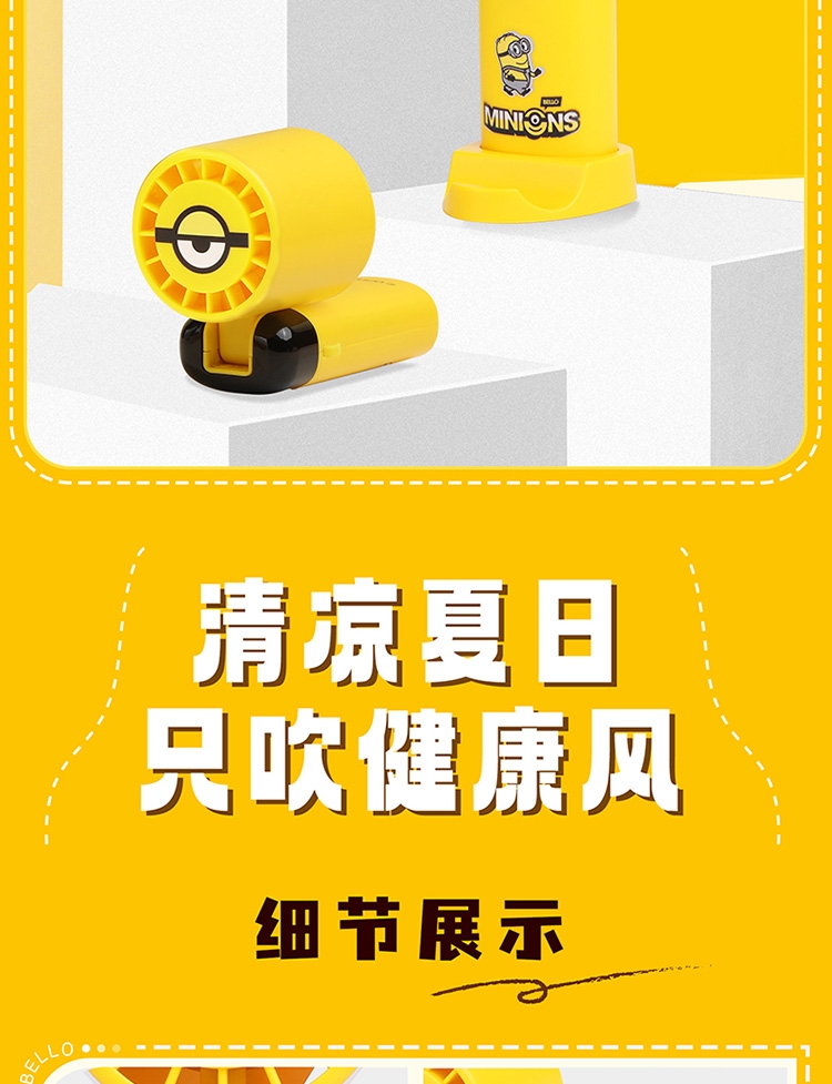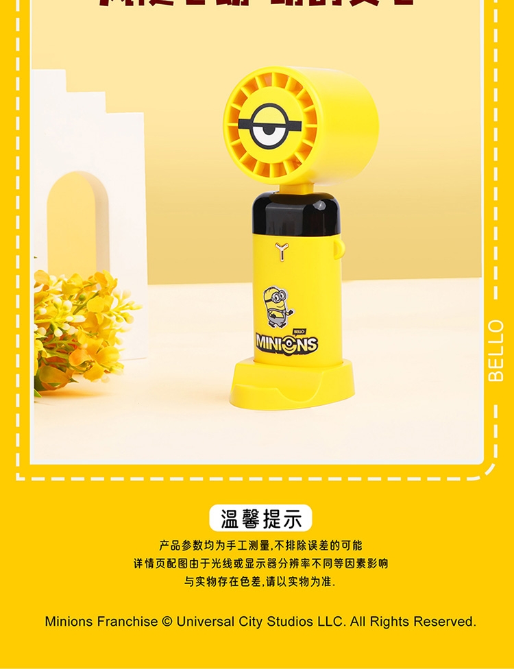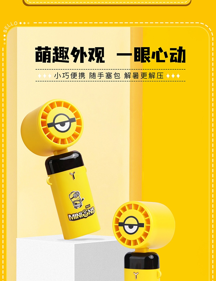 叠叠杯:灵动可爱的小黄人,让饮用成为更加休闲放松的;小黄人风扇通常设计得小巧轻便,方便携带;可手持可桌面一次满足两次用途