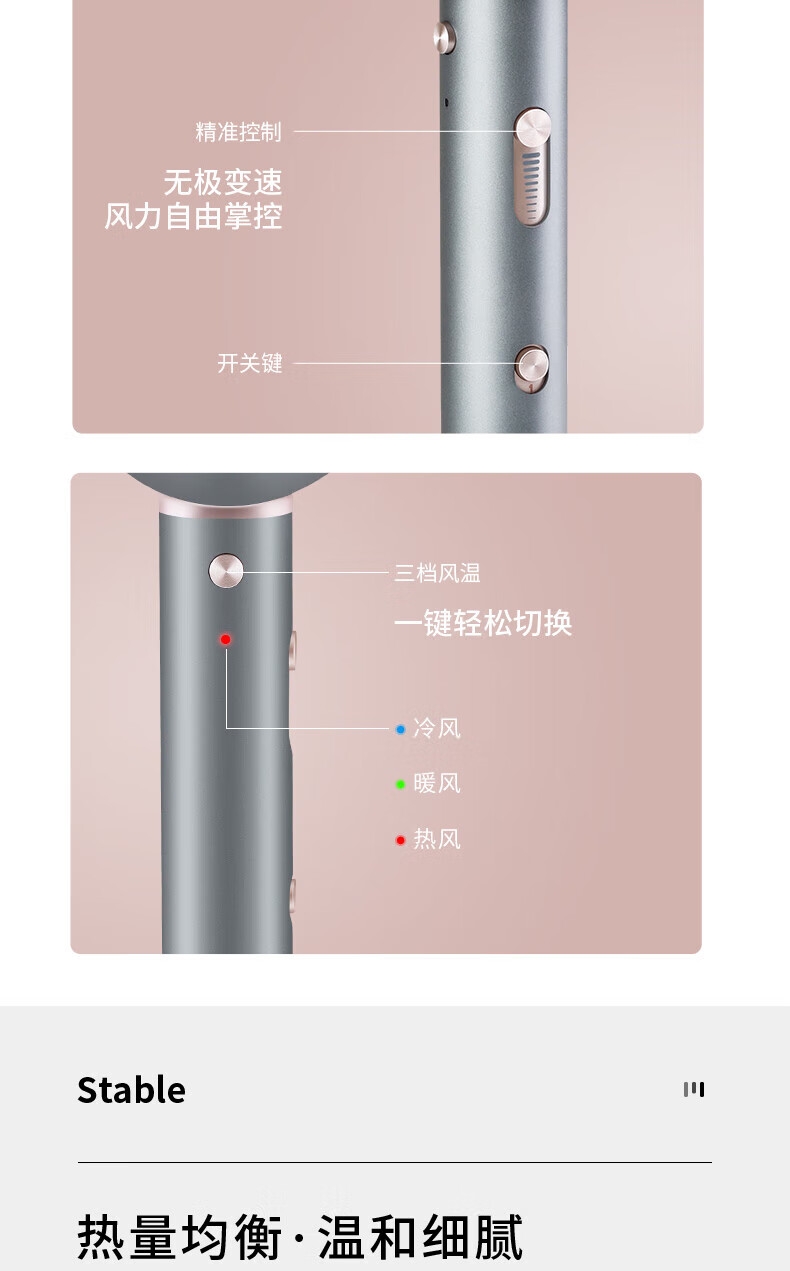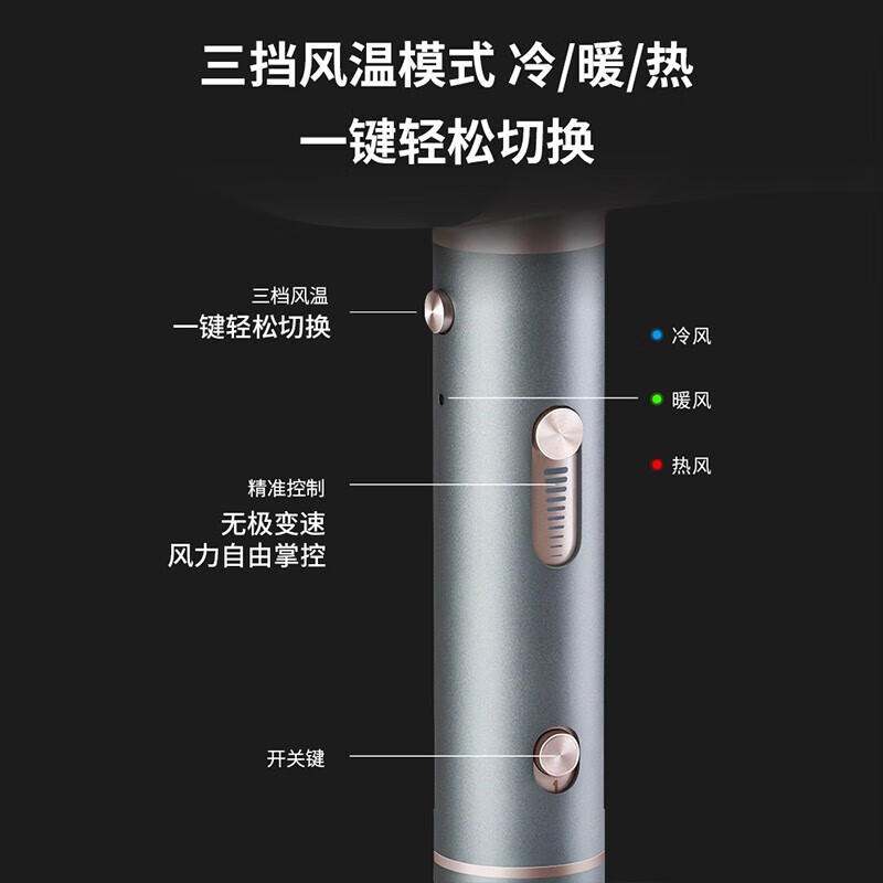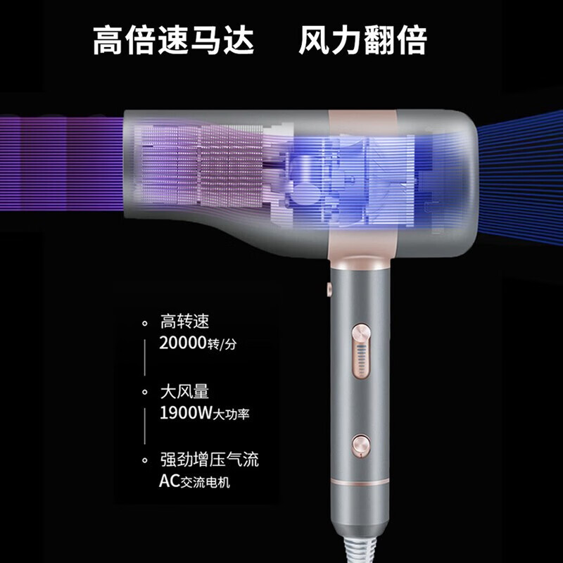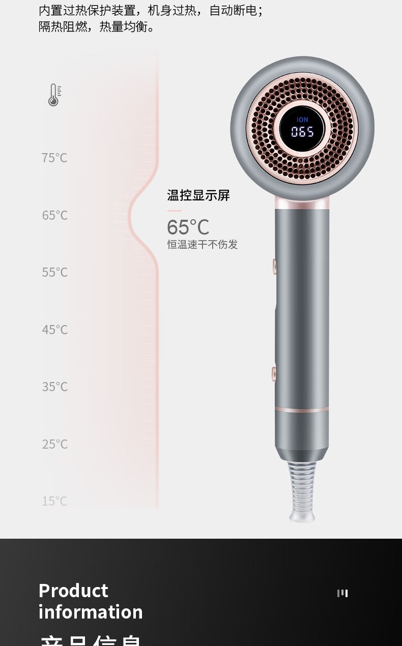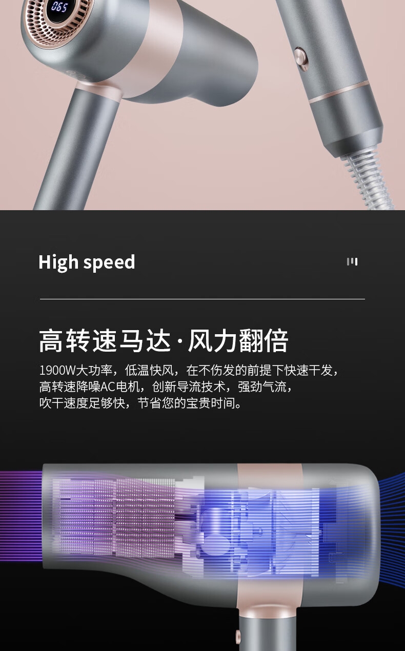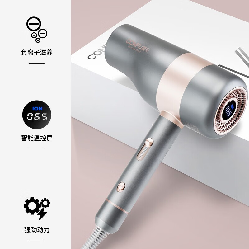 智能温控显示屏;水润负离子养护;高转速马达,风力翻倍