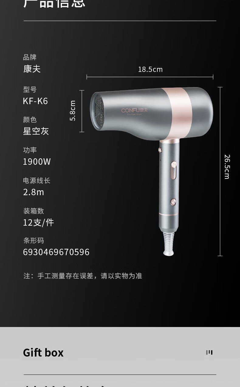 康夫 大功率恒温护发吹风筒KF-K6