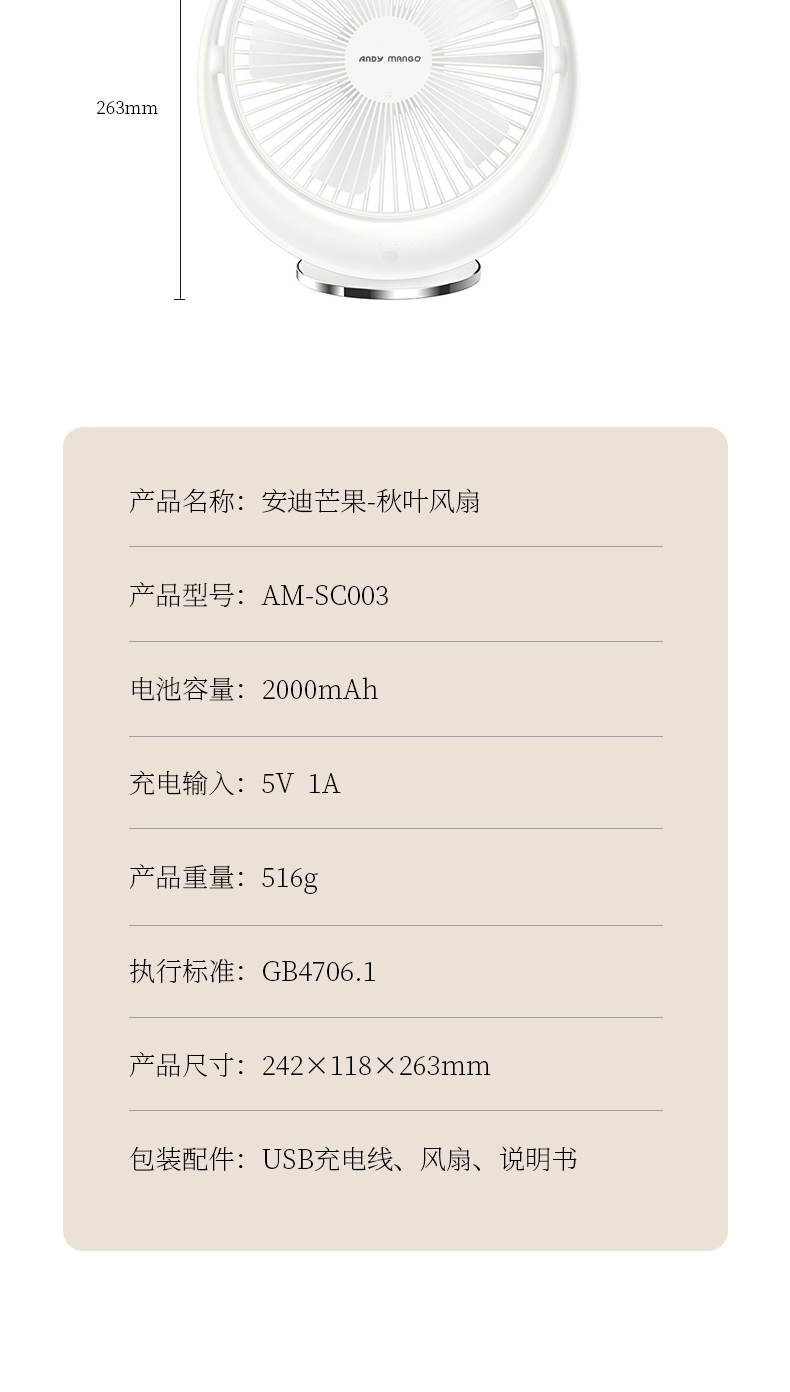 安迪芒果 秋叶台式风扇AM-SC003
