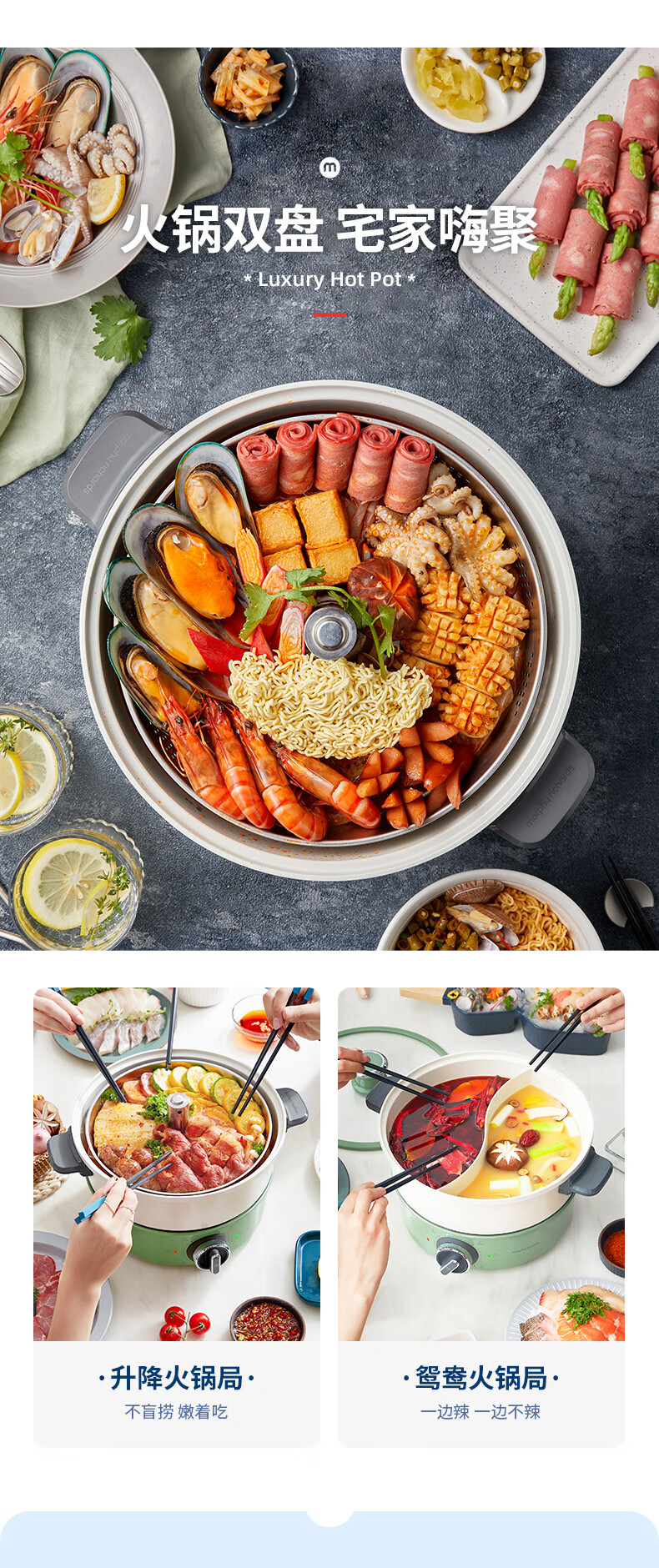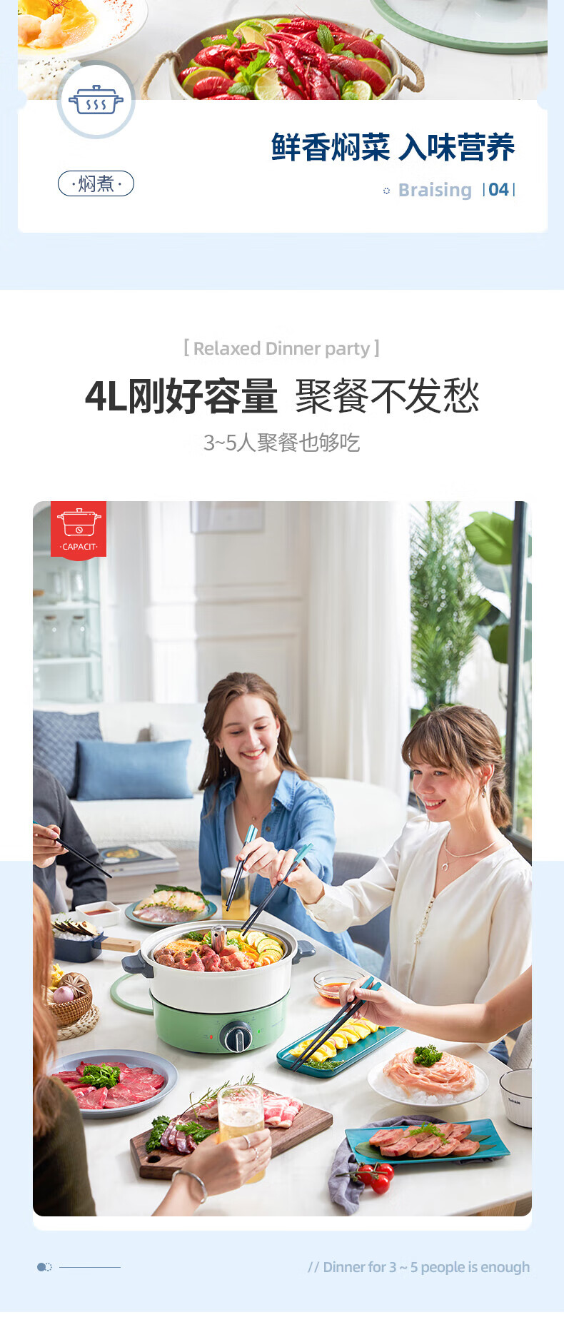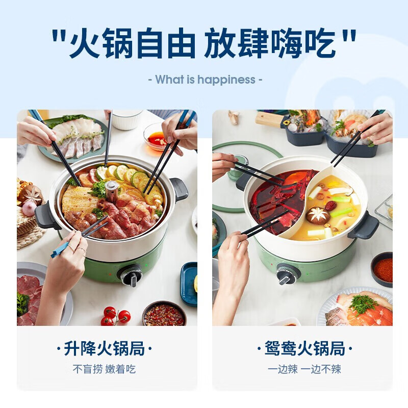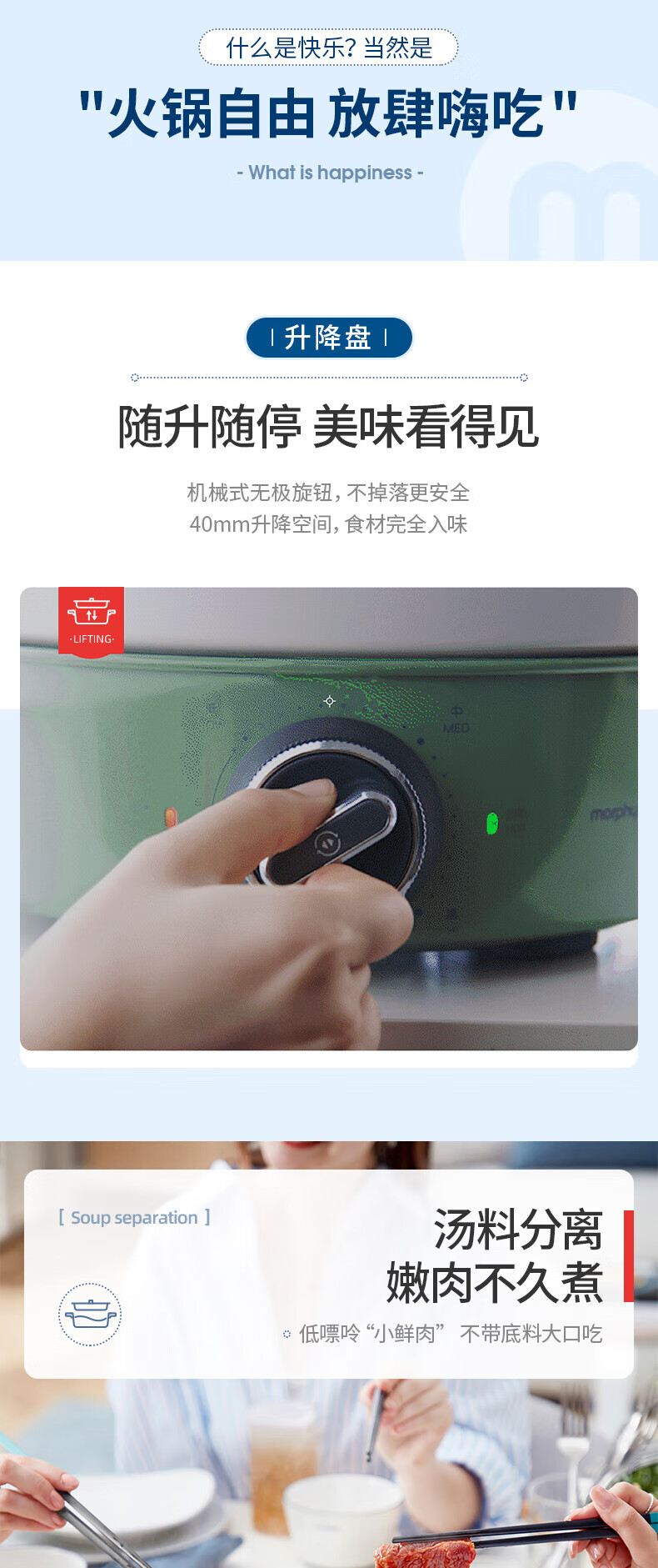 无极旋钮,随升随停;可拆卸升降盘,轻松清洗;4L大容量,多人同享美食