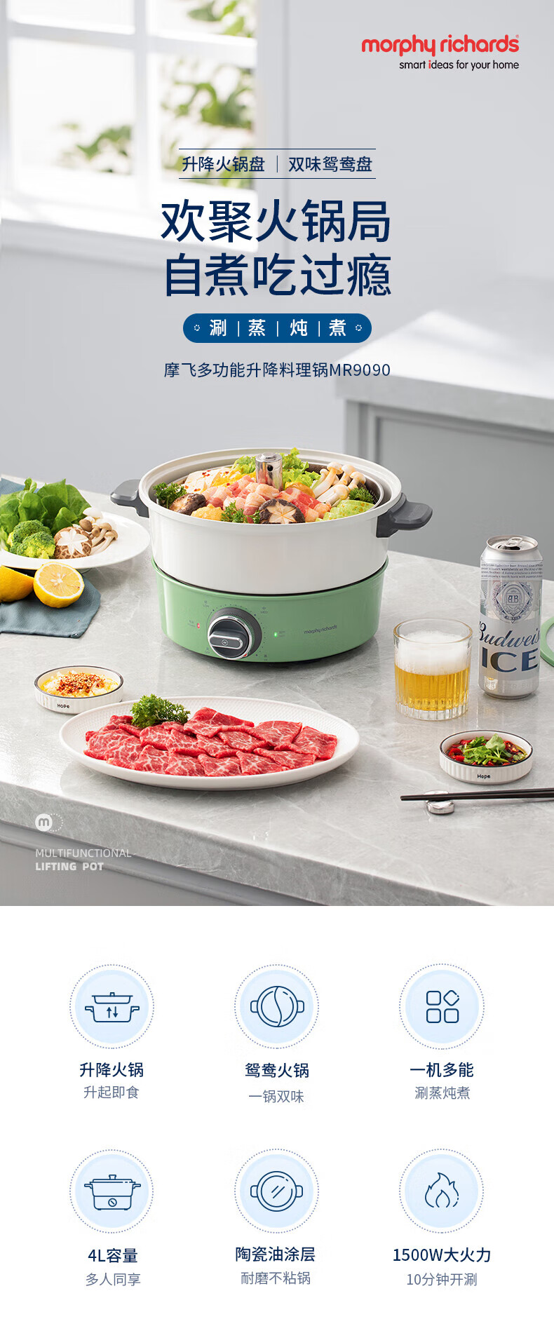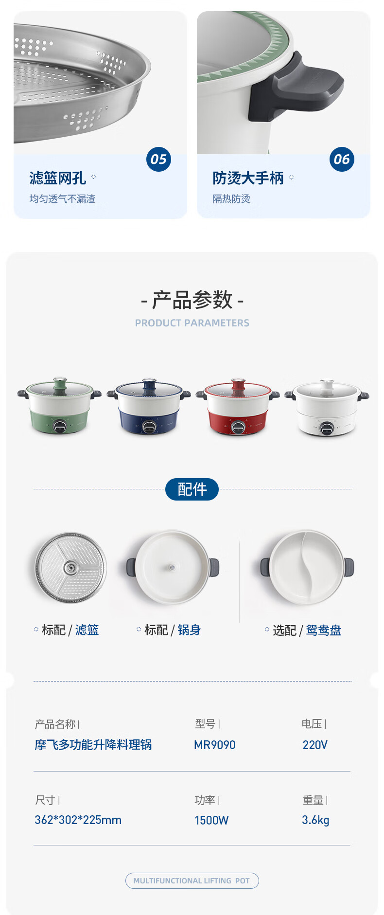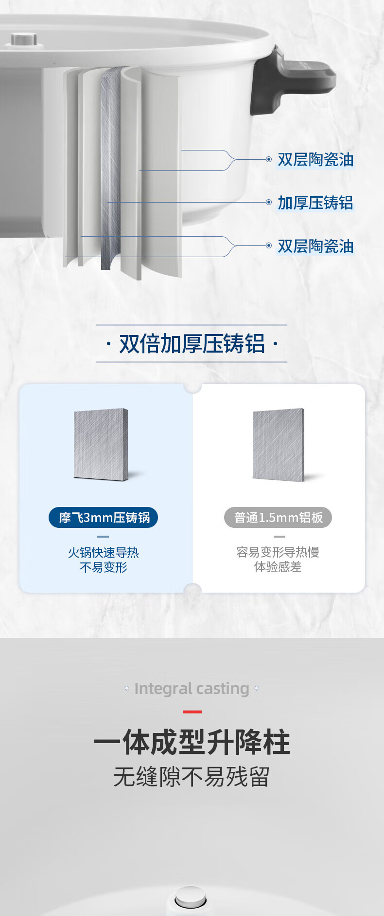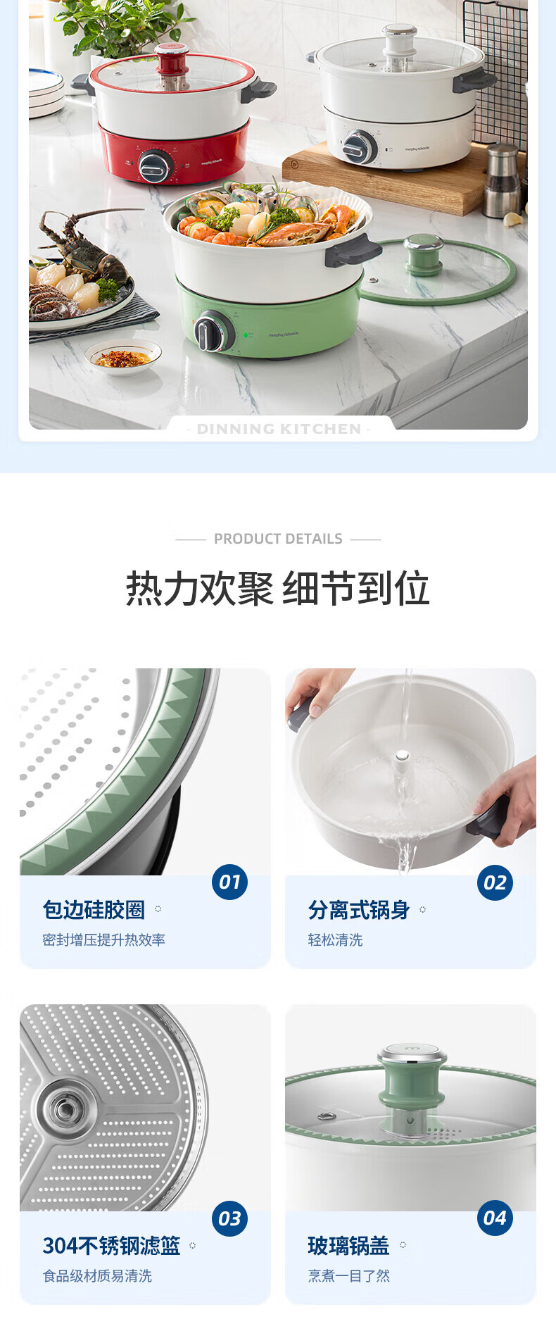 无极旋钮,随升随停;可拆卸升降盘,轻松清洗;4L大容量,多人同享美食
