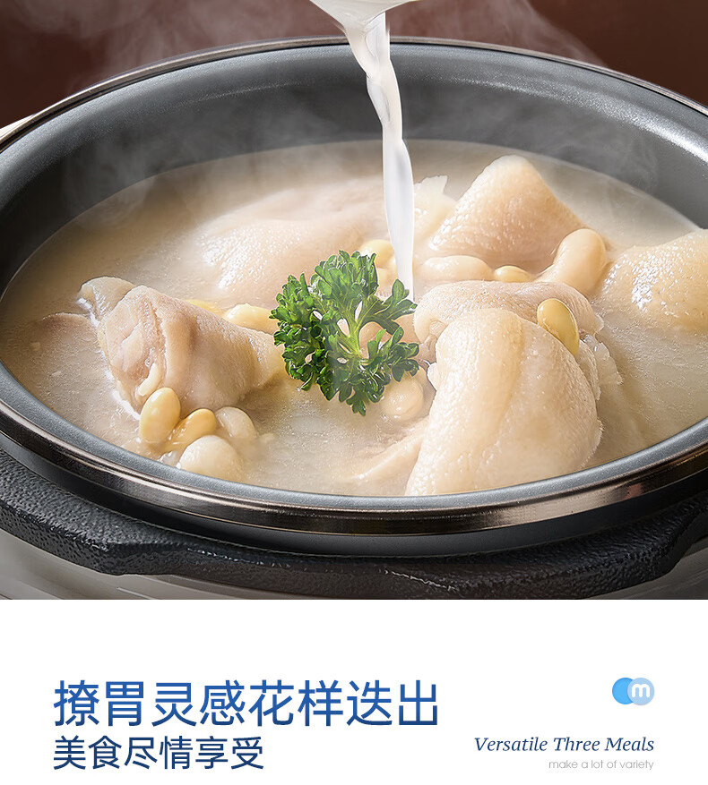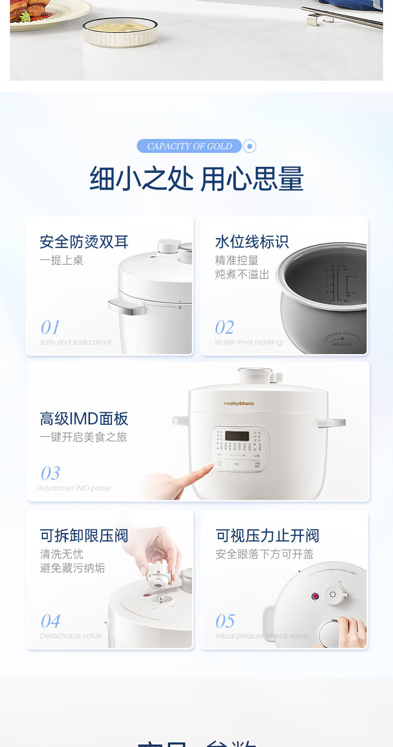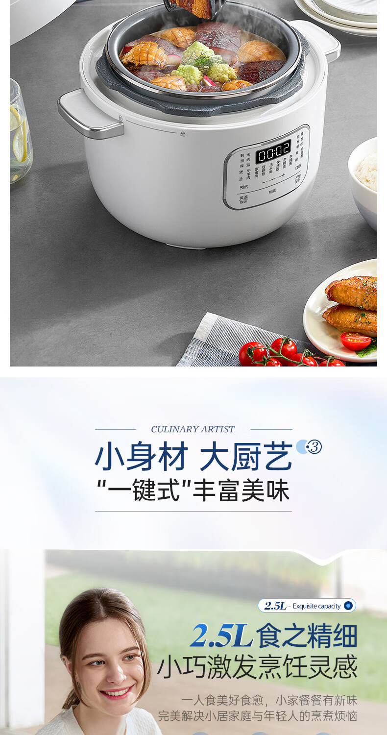 便捷双耳,轻松端上桌;;防烫把手,丝滑开盖;2.5L精致容量,满足1-4人料理;