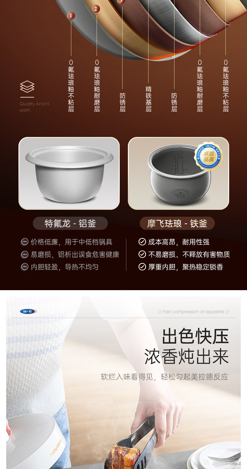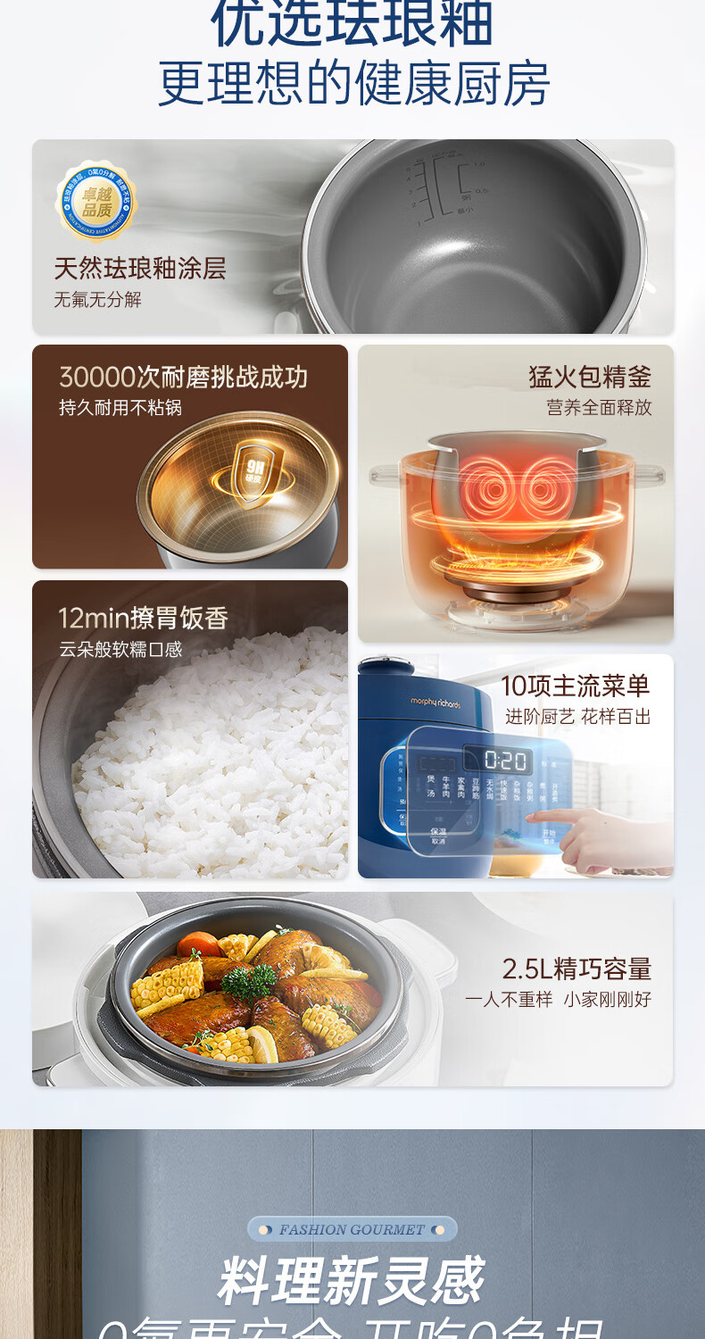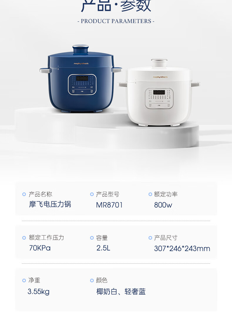 摩飞电器 家用珐琅釉电压力锅2.5LMR8701