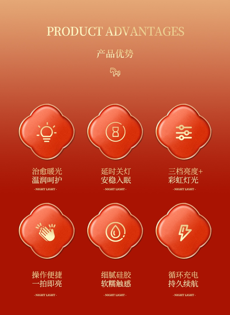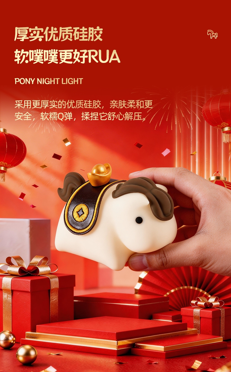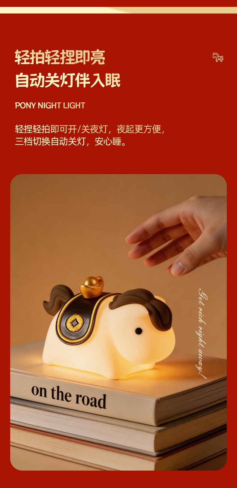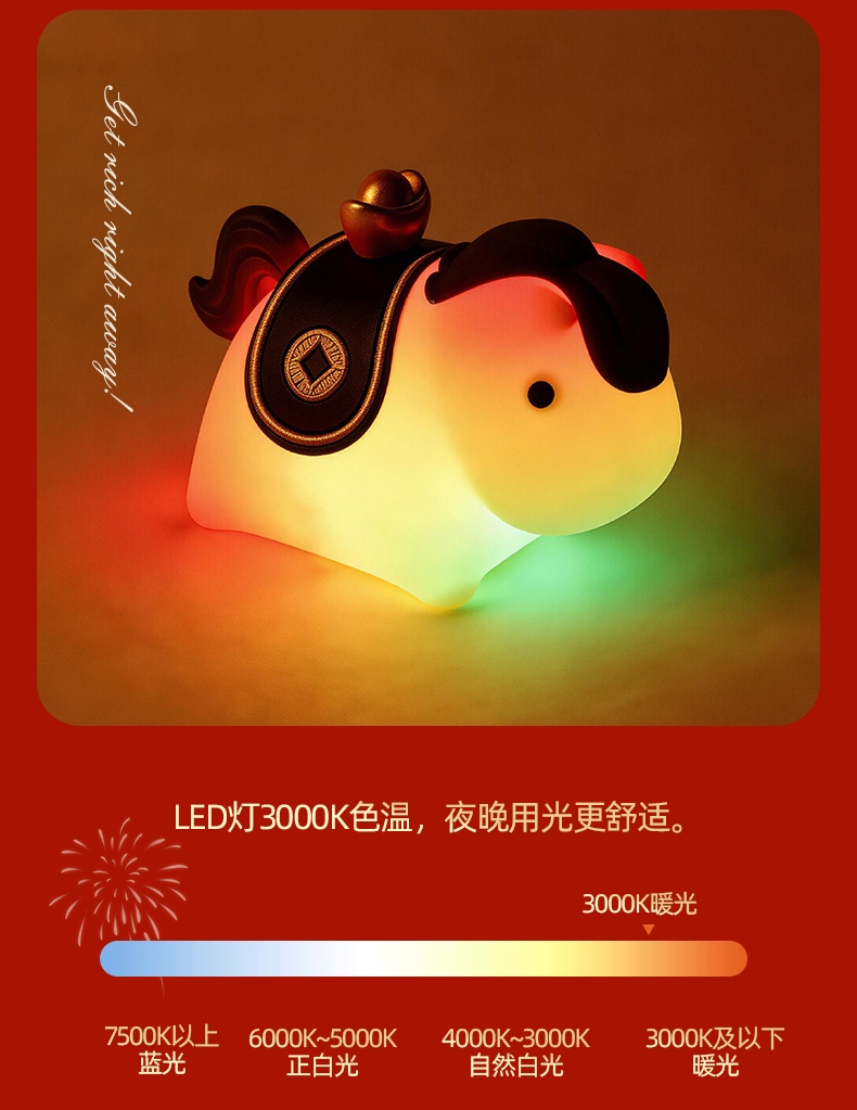 好寓意、柔光护眼助眠;软萌小马造型 + 暖光,缓解焦虑、治愈情绪;软萌开运 | 柔光护眼 | 一拍即亮 | 送礼佳选