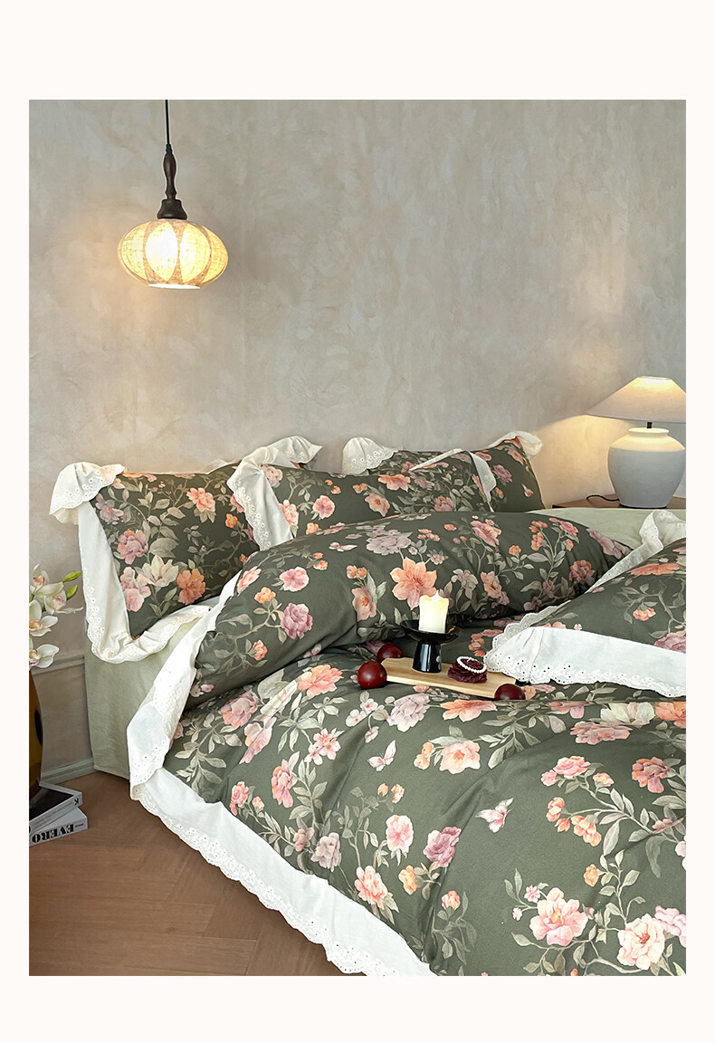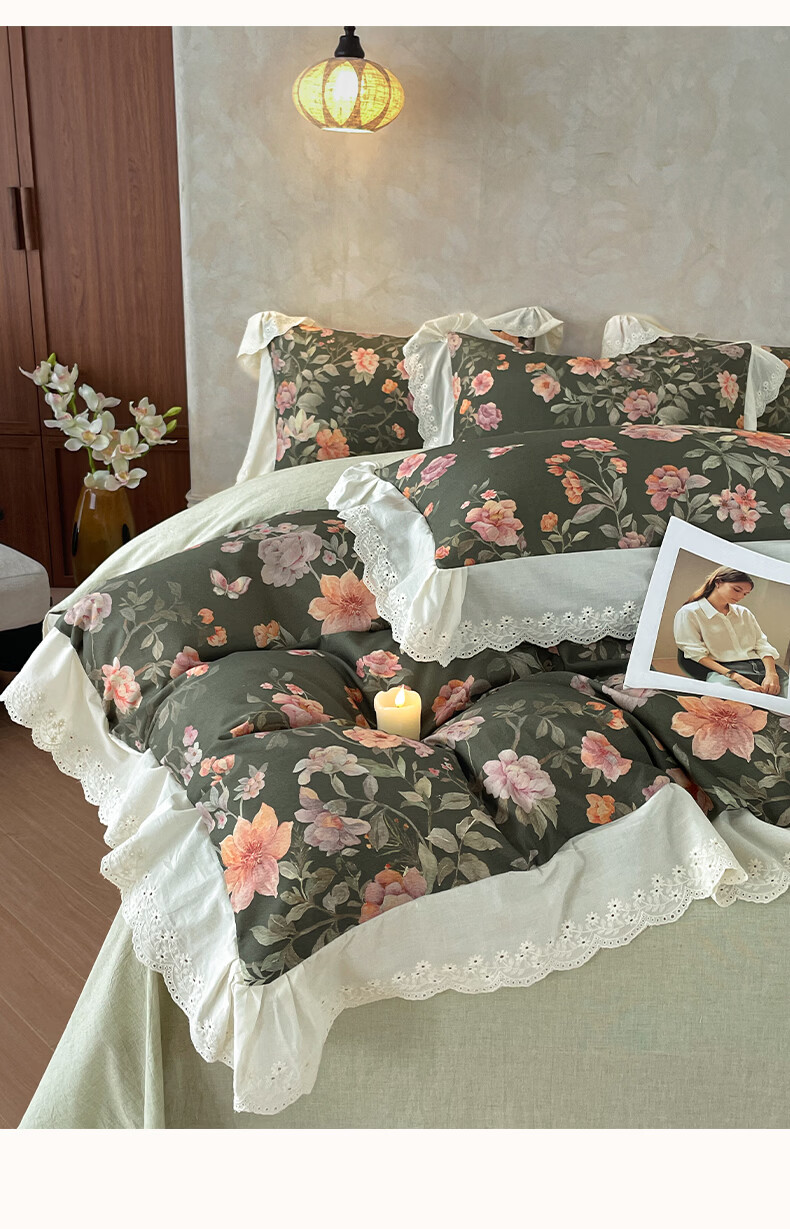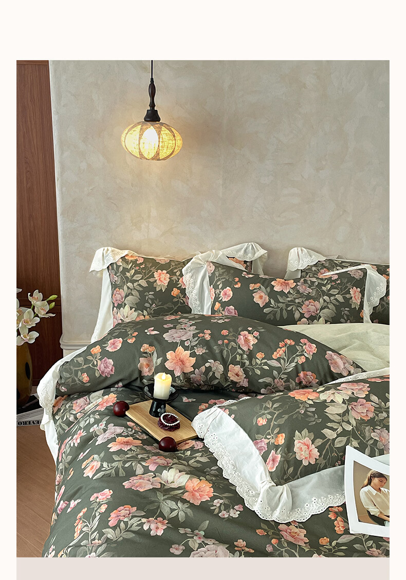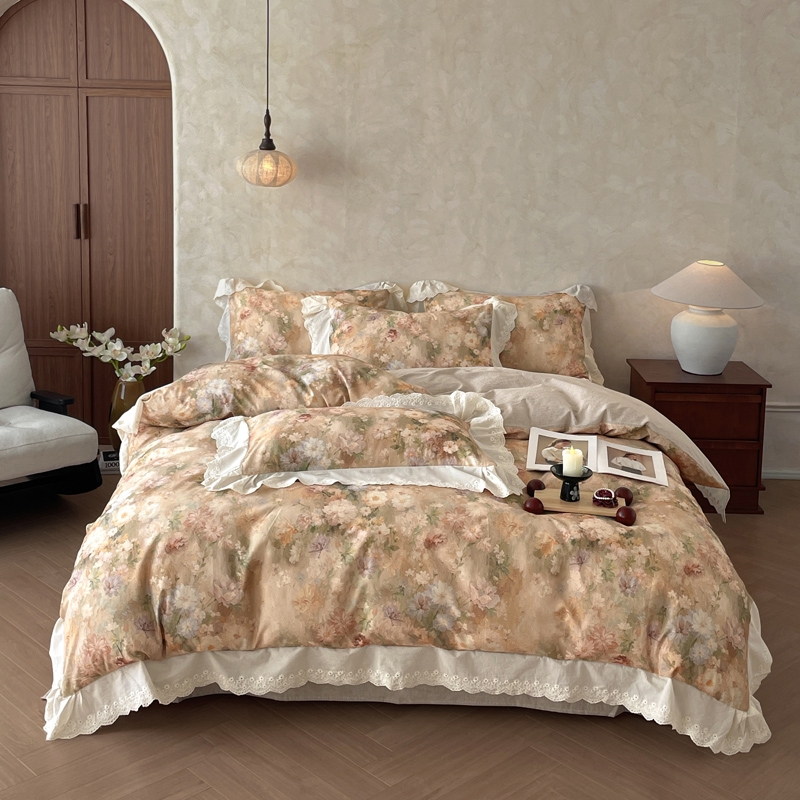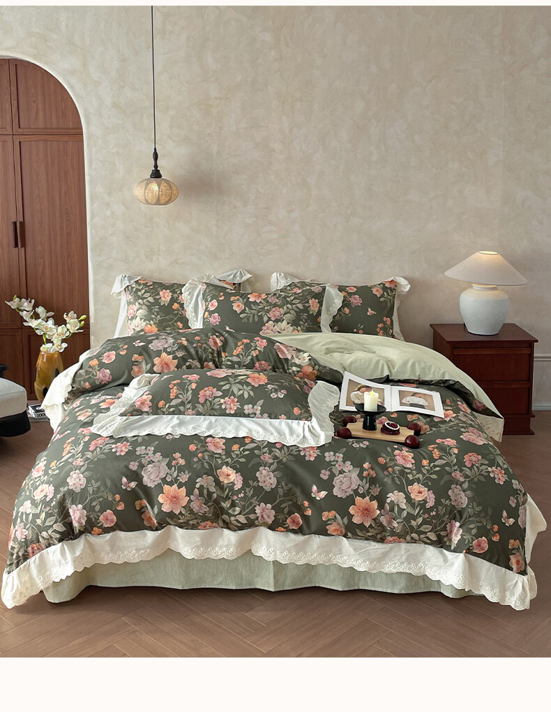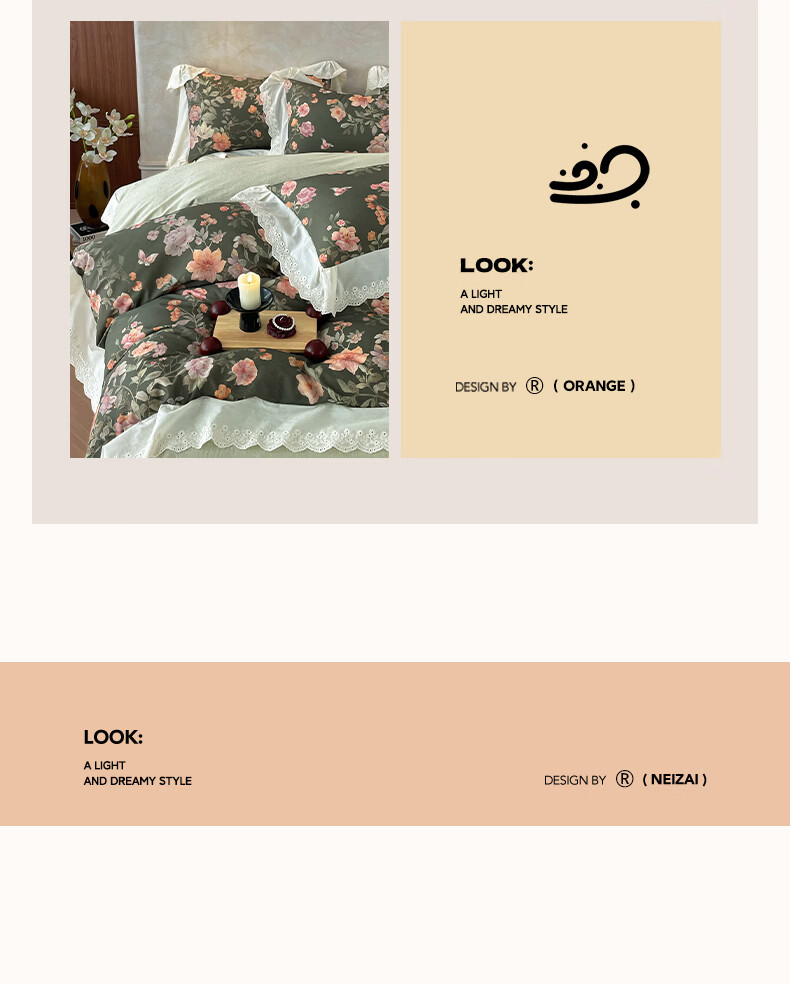 甄选棉麻面料,采用径向100%棉,纬向25%麻75;棉细腻而柔软小心翼翼的呵护享受0负担感的裸奔体验 ;套件采用全棉法式花边搭配印花设计让人眼前一亮的设计