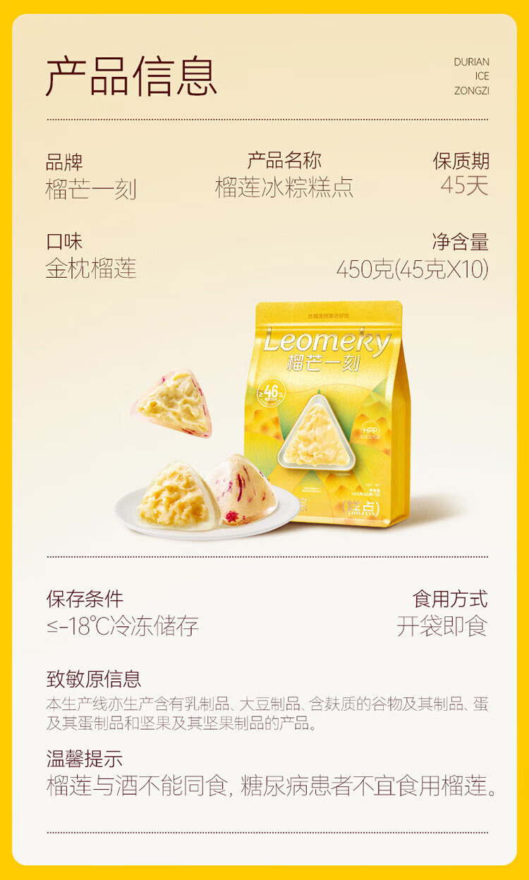 榴芒一刻 榴莲冰粽水晶粽45g*10枚