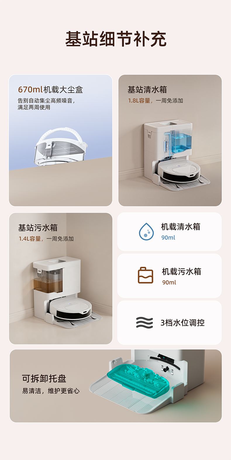 电器基站类型:自动洗抹布,充电,洗抹布集尘二合一