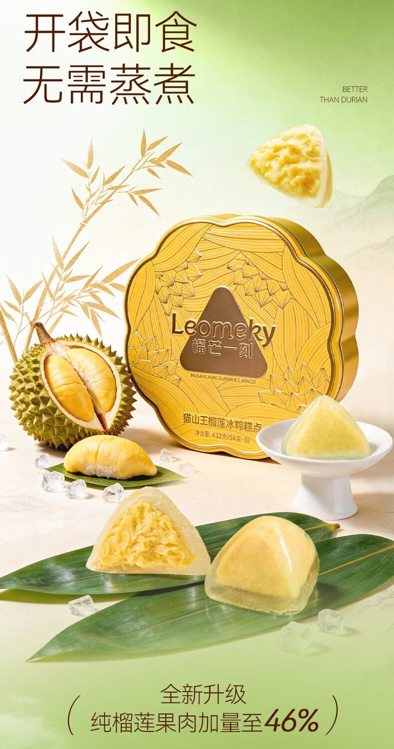 冰粽开袋即食,无需蒸煮;纯猫山王榴莲果肉 真爆浆;美味可口