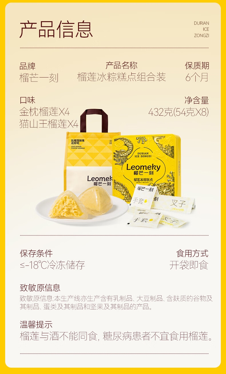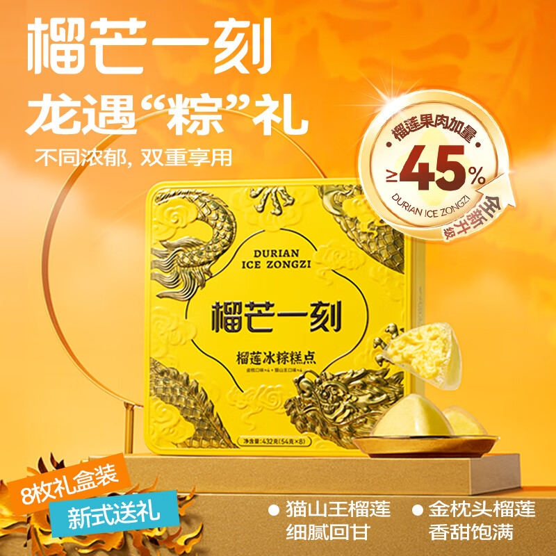 榴芒一刻 金枕榴莲冰粽组合54克*8枚