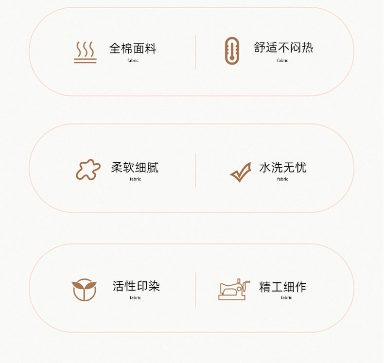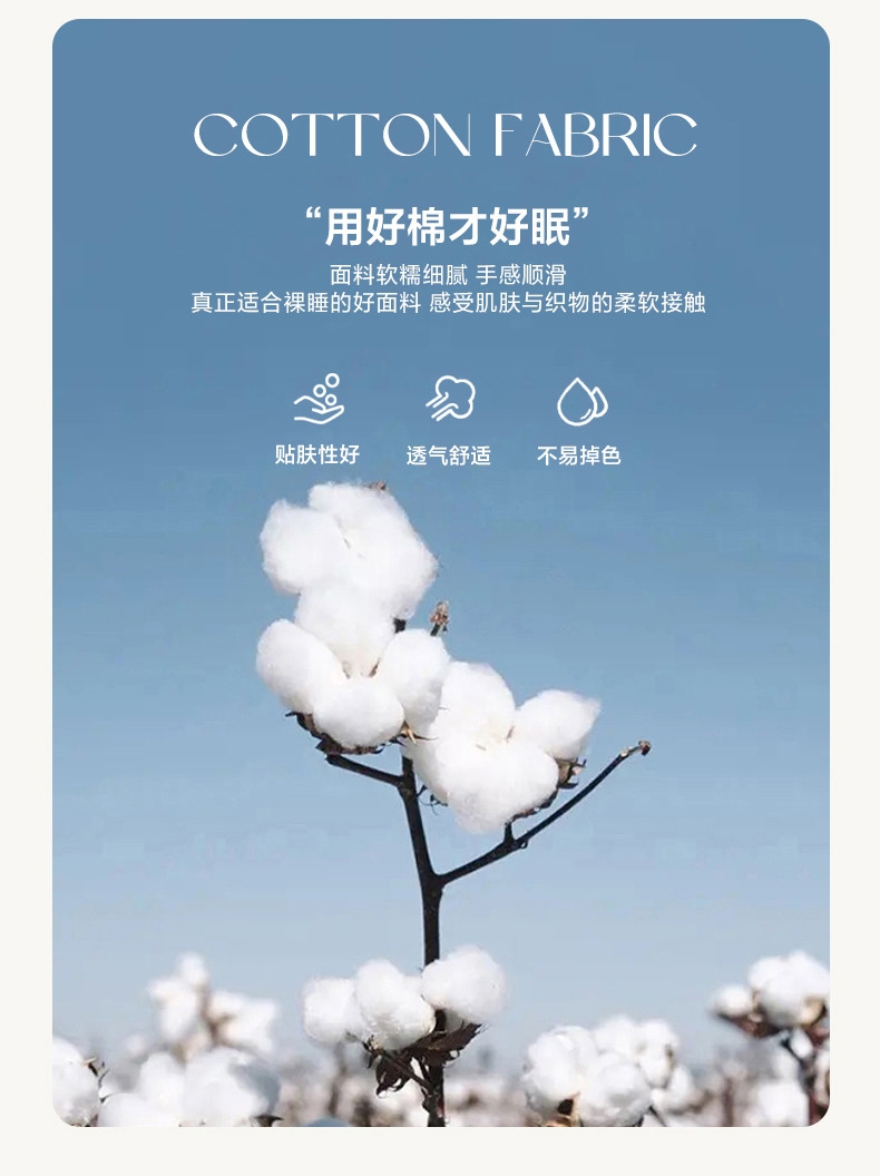 优质面料,柔软舒适,:亲肤透气,:亲肤透气;柔软亲肤云端般的绵柔触感;机洗水洗/健康舒适/不易褪色/色牢度高