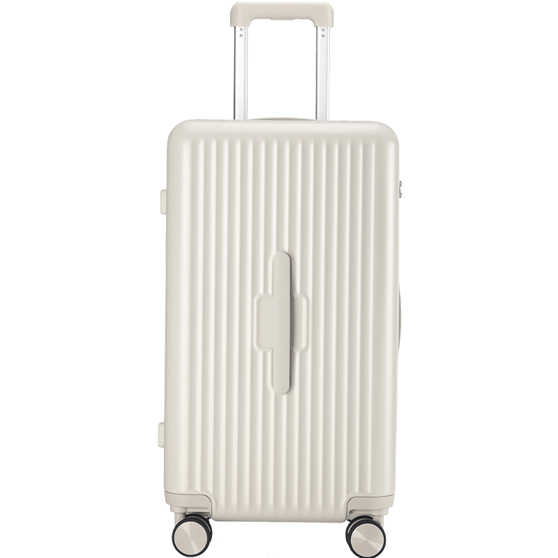 精密轴承静音万向8轮,顺滑无阻;加厚铝镁硅合金拉杆,9000次拉不坏;纯PC箱体材质,轻盈坚韧,防刮耐磨