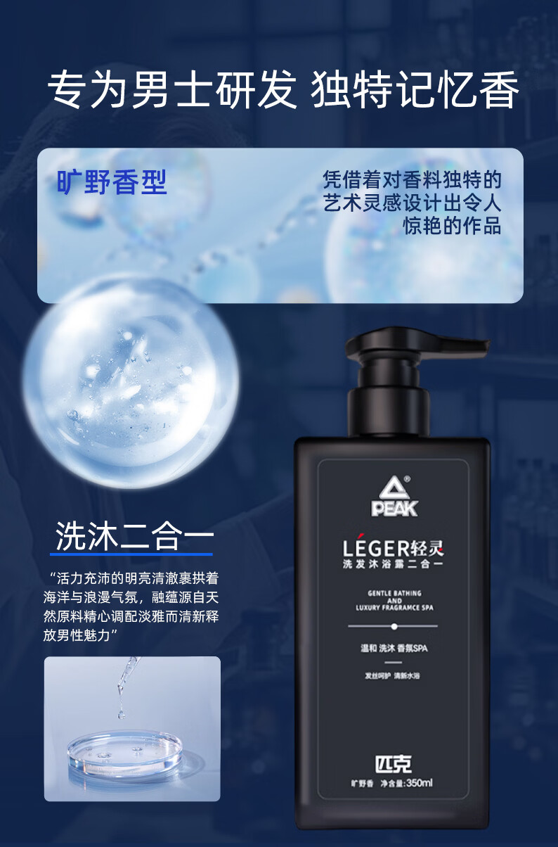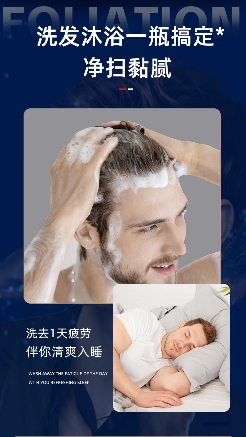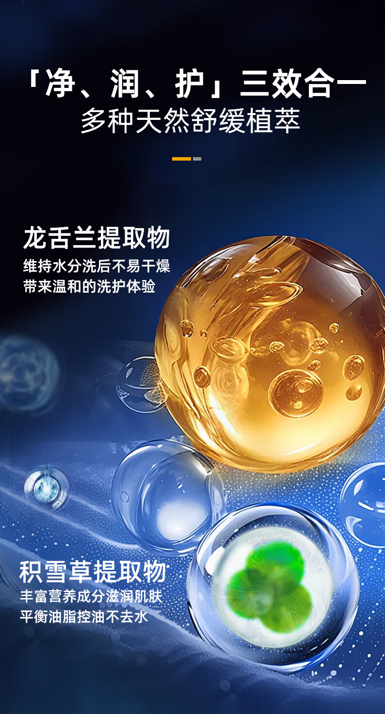 洗发沐浴一步到位高效清洁,净扫黏腻;丰盈泡沫;多种天然舒缓植萃 “净、润、护”三效合一
