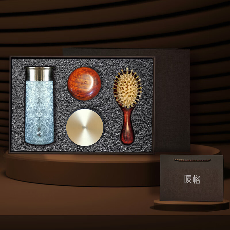 配置清单:纯钛保温杯1个260ML,檀木羊角按摩梳1个,铜木香熏1个(配一个黄铜储香罐),檀木羊角气垫梳1把