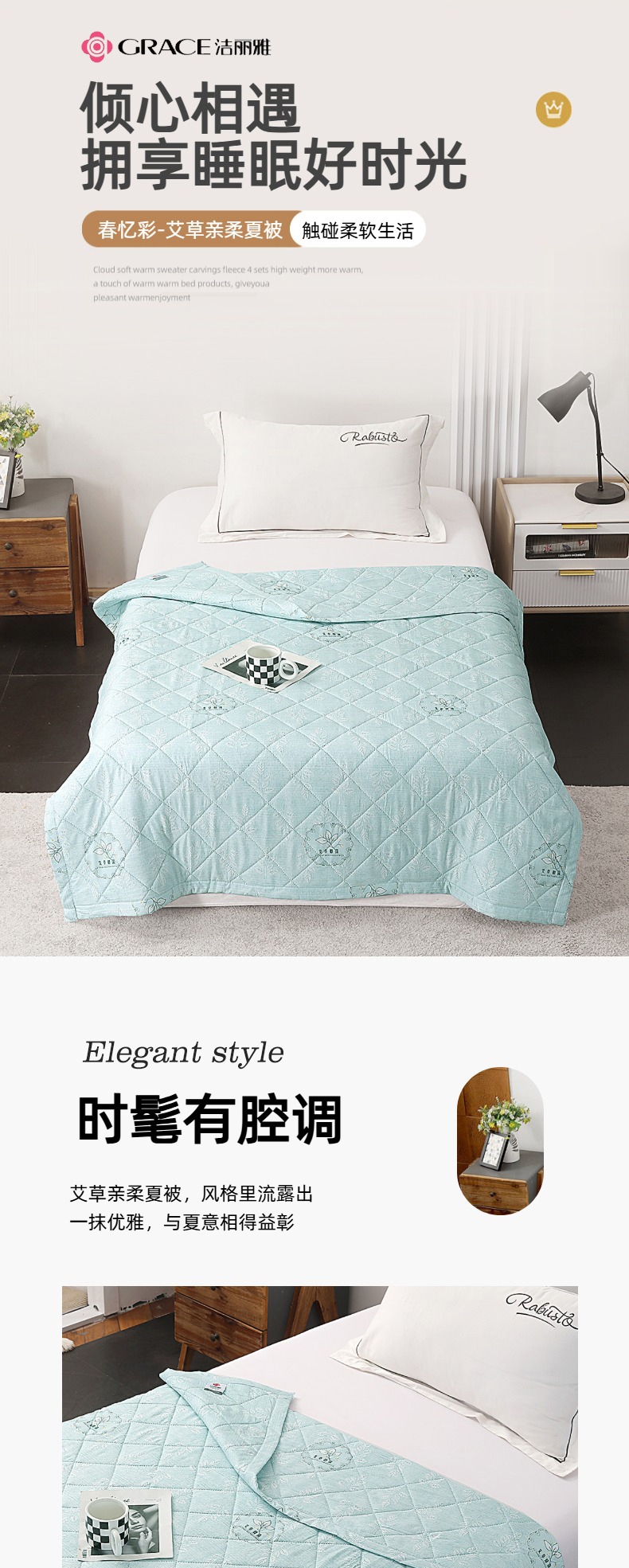 洁丽雅 春忆彩.艾草亲柔夏被JLY25501