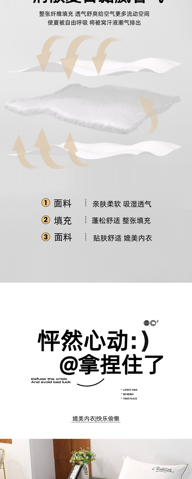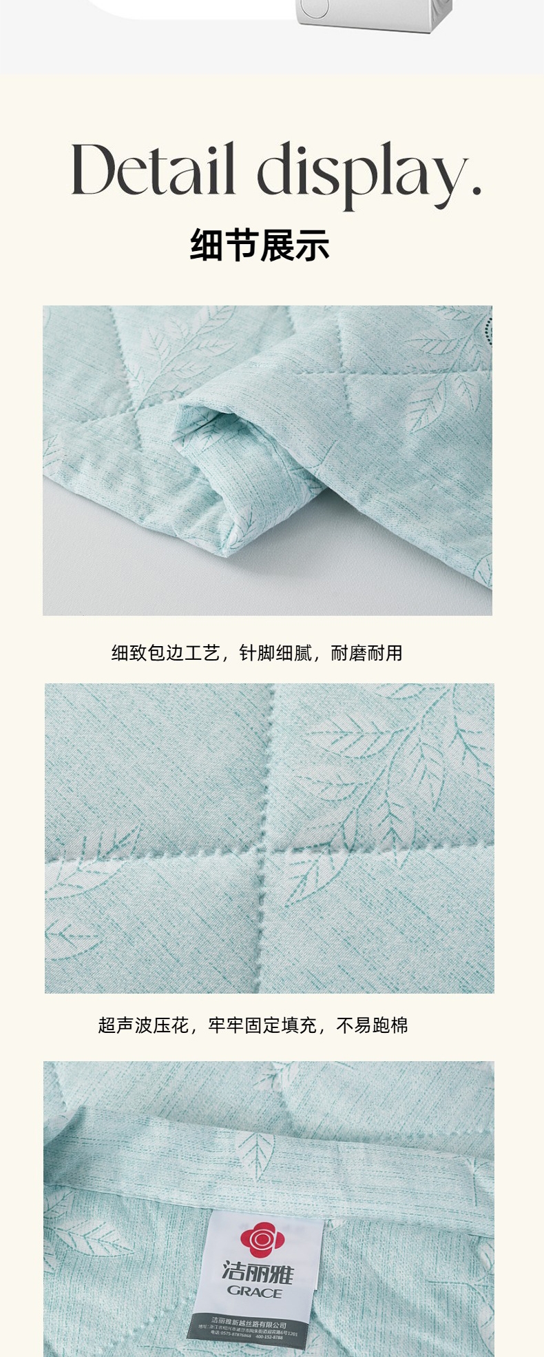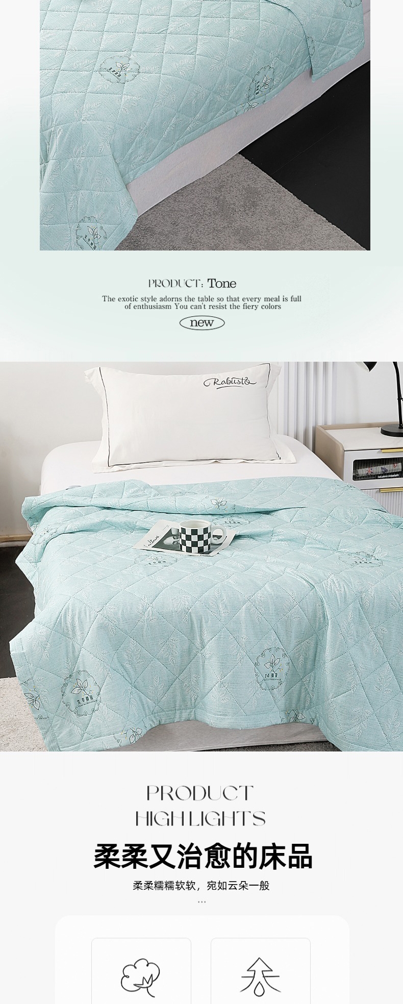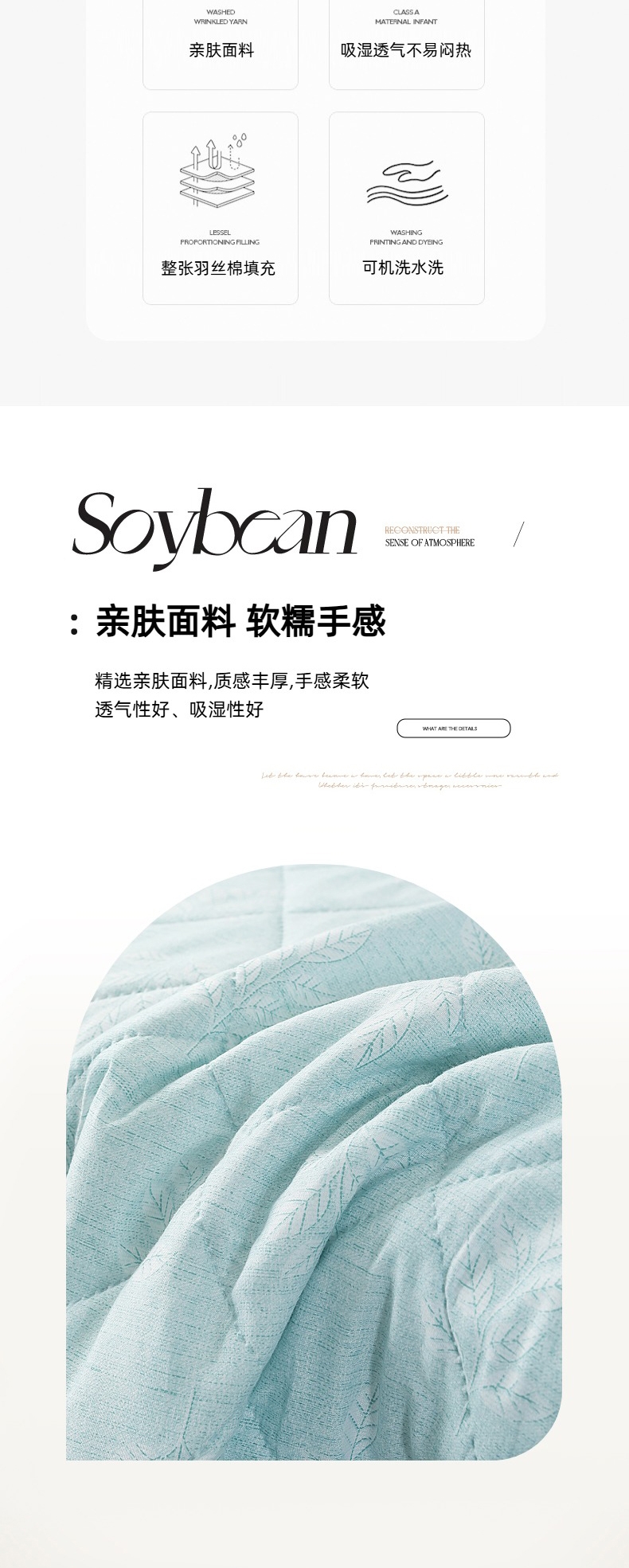甄选水洗棉面料,贴身亲肤不闷热;手感细腻,采用环保印染工艺;添加艾草助剂,健康环保,夏日睡眠更舒心。